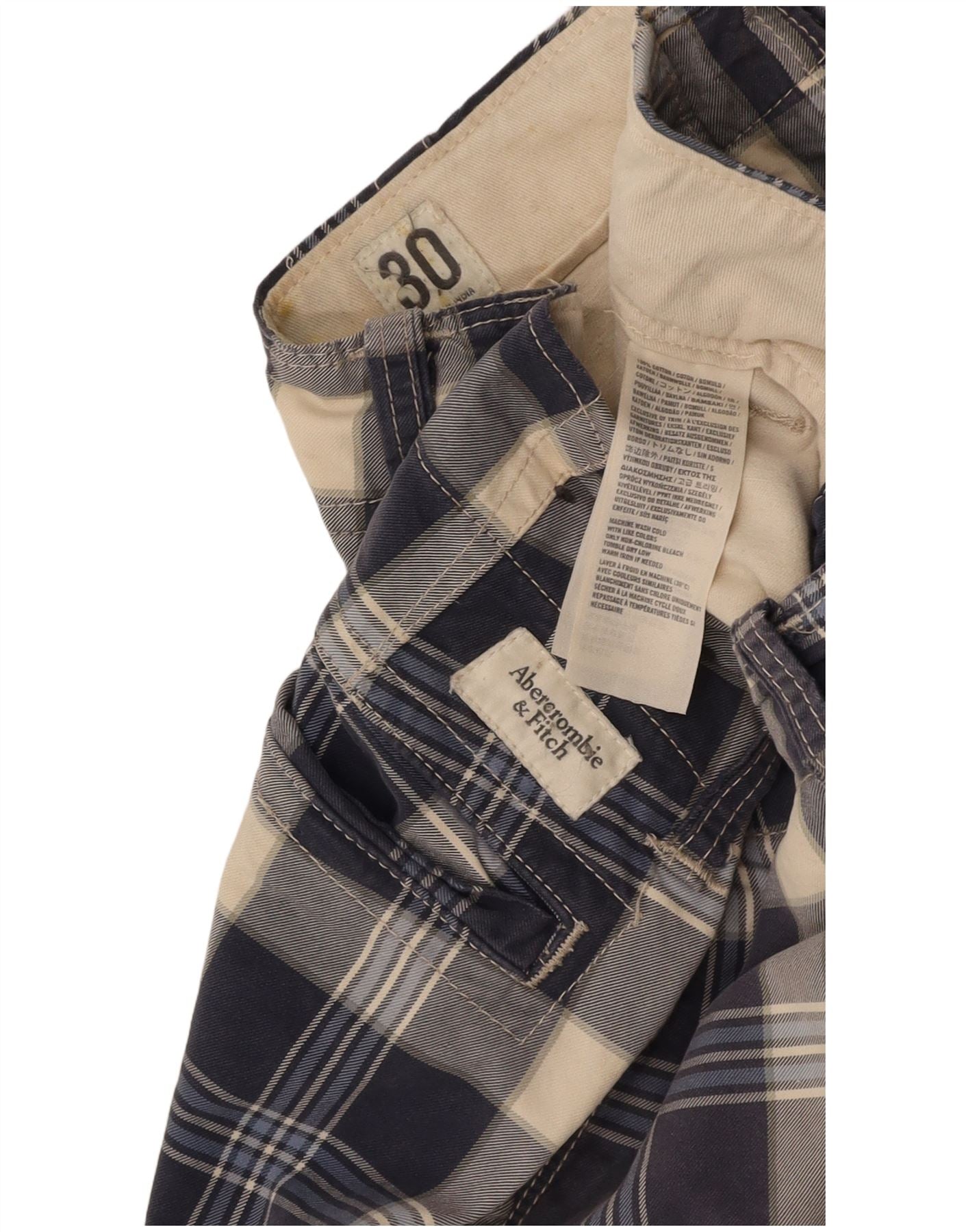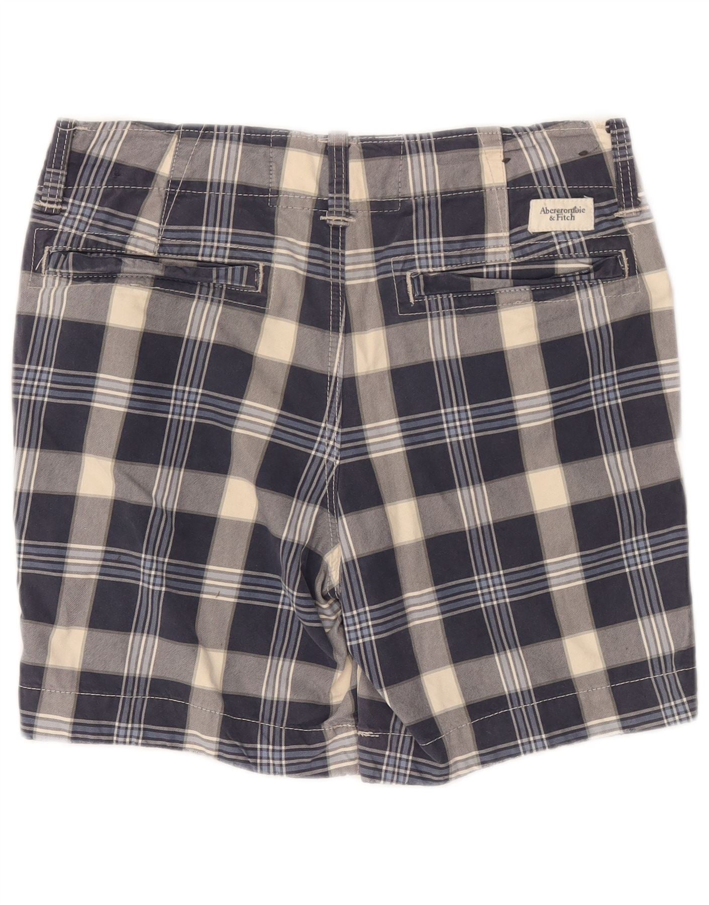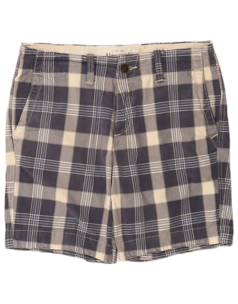 ABERCROMBIE & FITCH Mens Chino Shorts W30 Medium Navy Blue Check Cotton