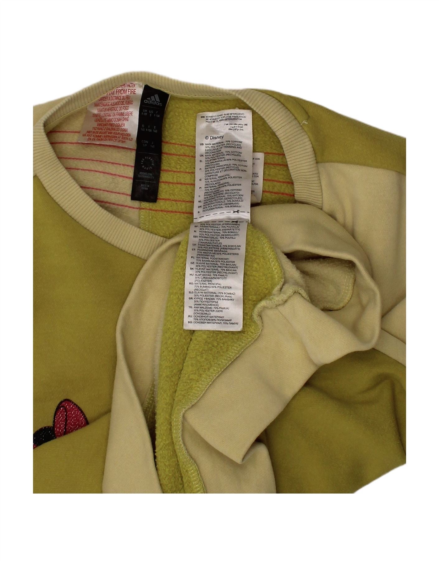 ADIDAS Girls Disney Graphic Sweatshirt Jumper 9-10 Years Green Colourblock