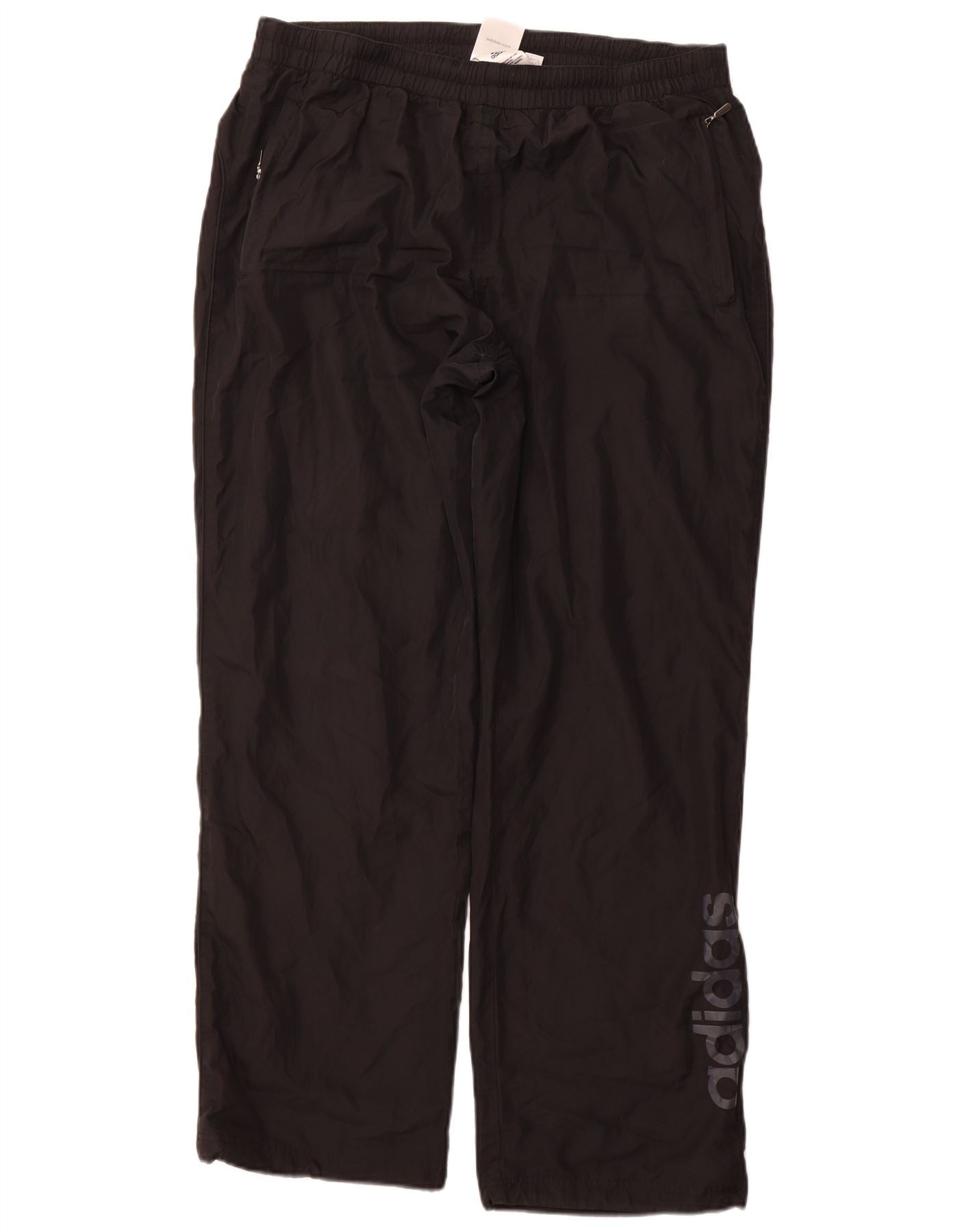 ADIDAS muške grafičke hlače od trenirke, velike crne poliesterske hlače