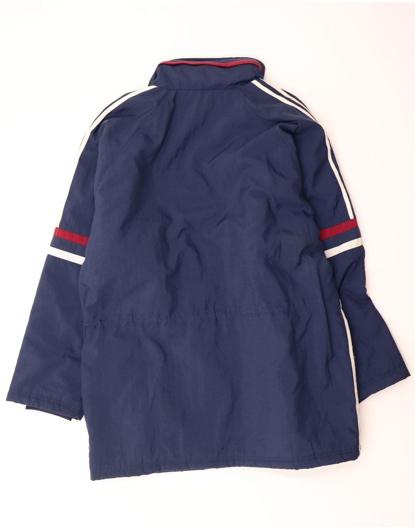 ADIDAS Mens Hooded Windbreaker Jacket UK 44/46 Large Navy Blue Colourblock