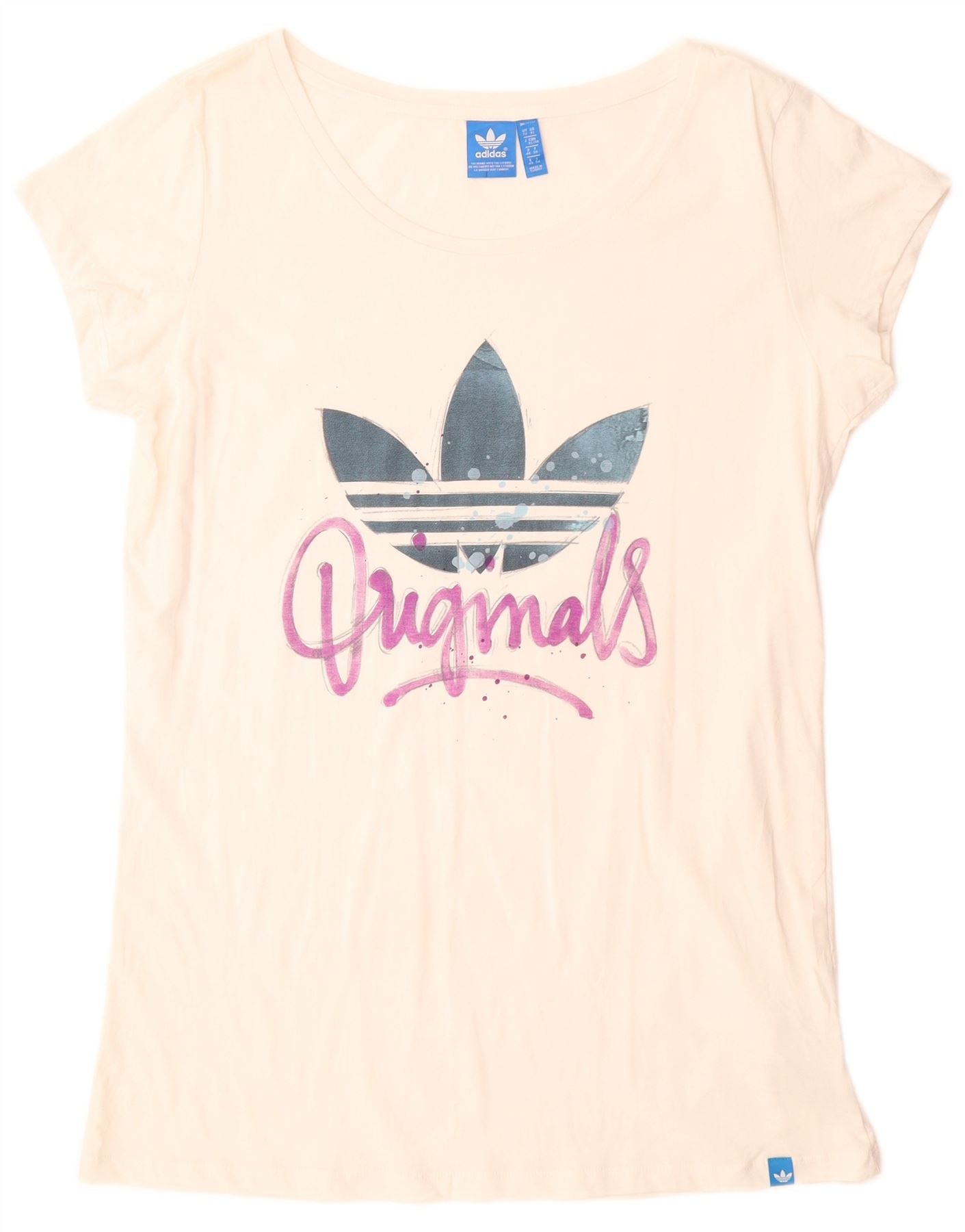 ADIDAS ženska majica kratkih rukava s dugim crtama UK 22 XL bijeli pamuk