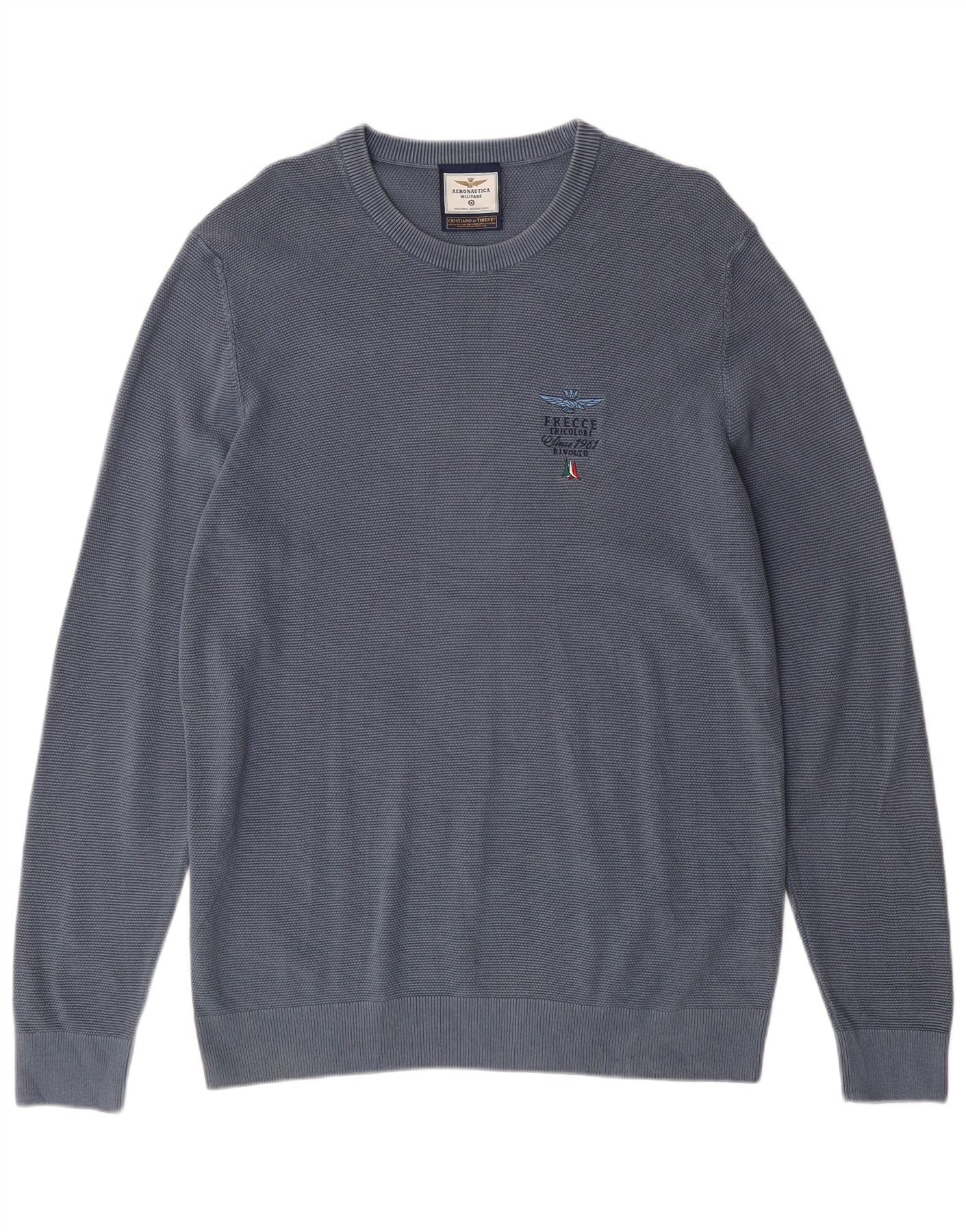 AERONAUTICA MILITARE Muški pulover s okruglim izrezom XL plavi pamuk