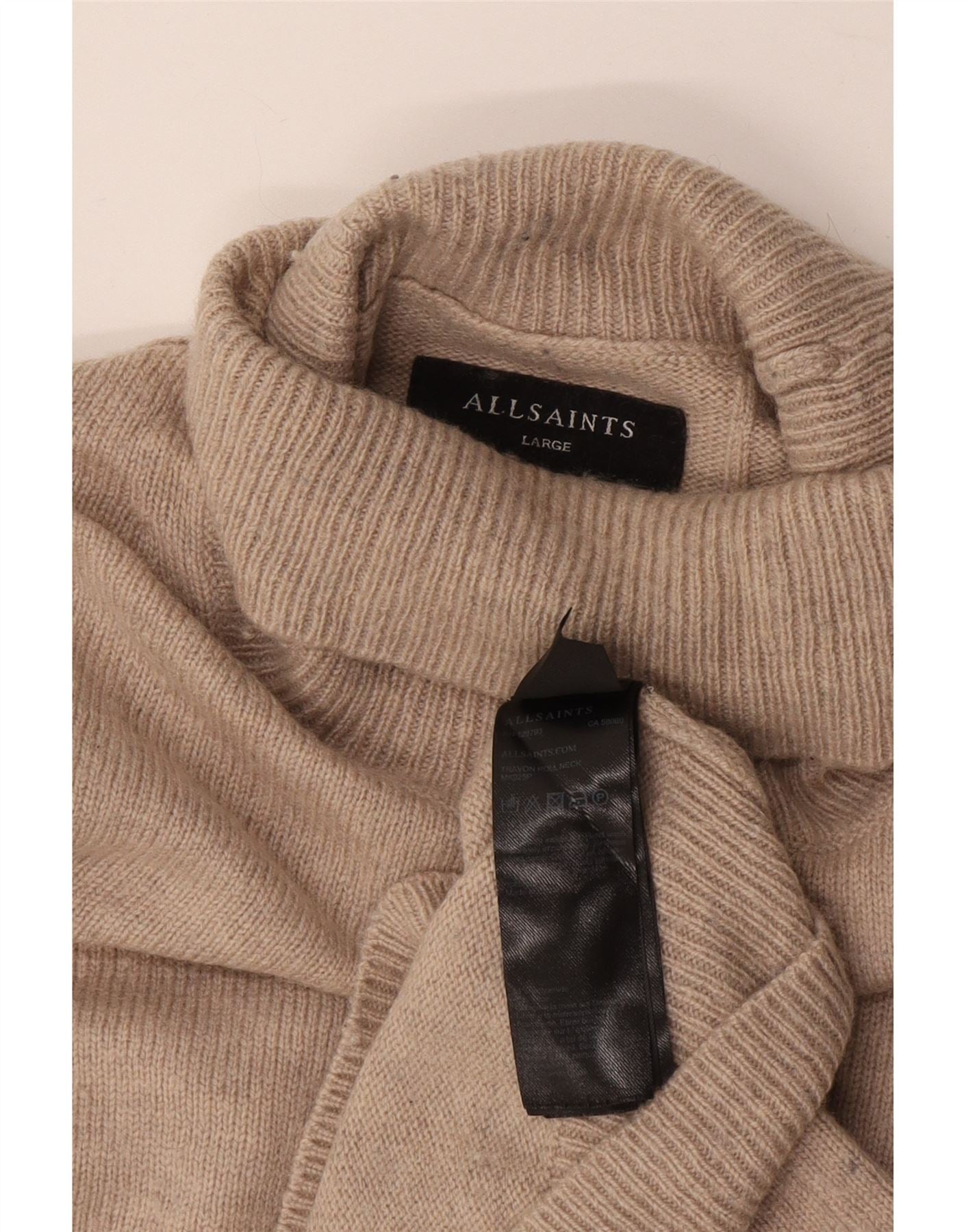 ALL SAINTS Muški pulover s rol izrezom Veliki bež vuneni