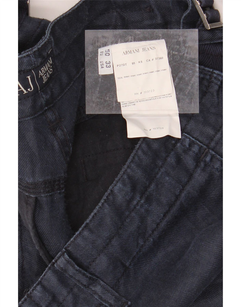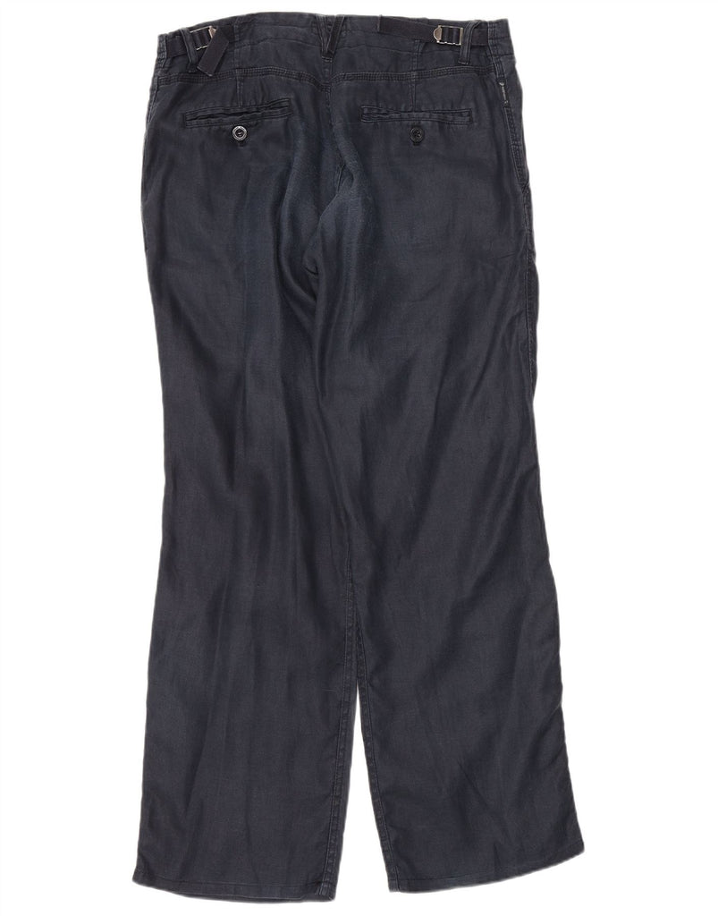 ARMANI Mens Wide Leg Casual Trousers EU 50 Large W33 L32 Navy Blue Ramie