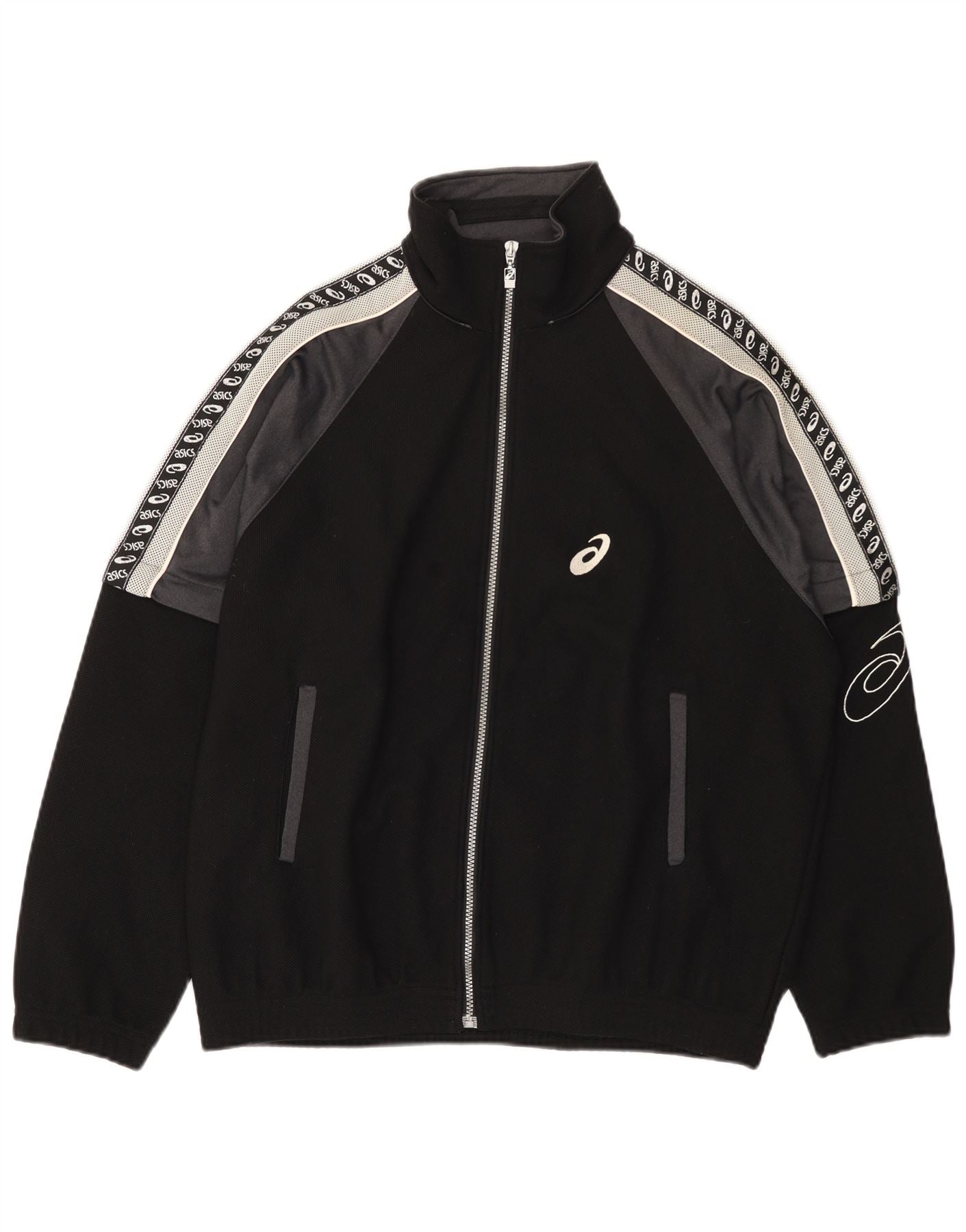 Home > Vintage Asics odjeća > Muška vintage Asics odjeća > Gornji dijelovi trenirke > Asics muška trenirka s grafičkim motivima, velika jakna u crnoj boji