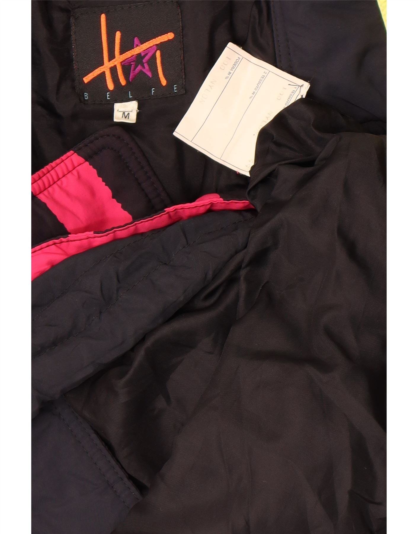 - AI opis: Ova Belfe ženska podstavljena jakna izrađena je od tkanog najlona, pružajući podstavljen osjećaj. Sadrži odvažni višebojni geometrijski apstraktni uzorak u crnoj, ružičastoj i tirkiznoj boji. Visoki ovratnik i dugi rukavi pružaju dovoljno pokrivanja. Potpuni patentni zatvarač osigurava praktičnost. Žuti naglašeni džepovi daju živahan dodir. Opušteni kroj i podesivi rub nude udobnost i svestranost. Suptilni detalj logotipa upotpunjuje ovaj dizajn inspiriran 80-ima.