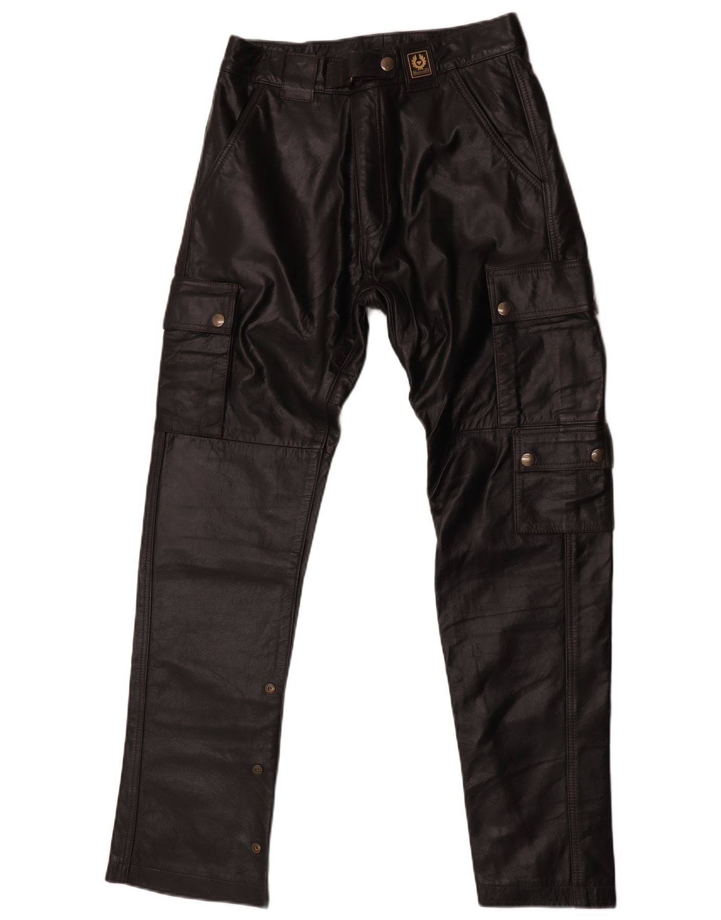 Belstaff muške kožne kargo hlače male W30 L29 crne kožne biciklističke hlače