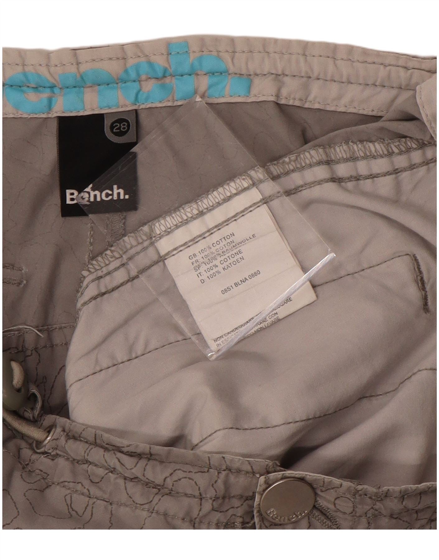 BENCH Muške kargo kratke hlače W28 Male sive geometrijske pamučne hlače