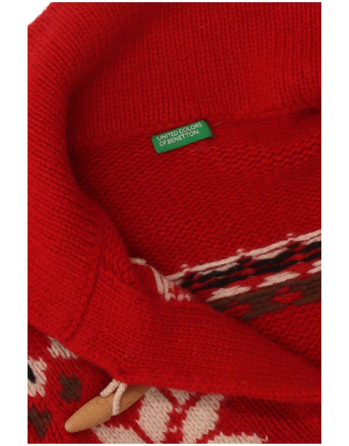 BENETTON ženski kratki kardigan pulover UK 10 Small Red Fair Isle