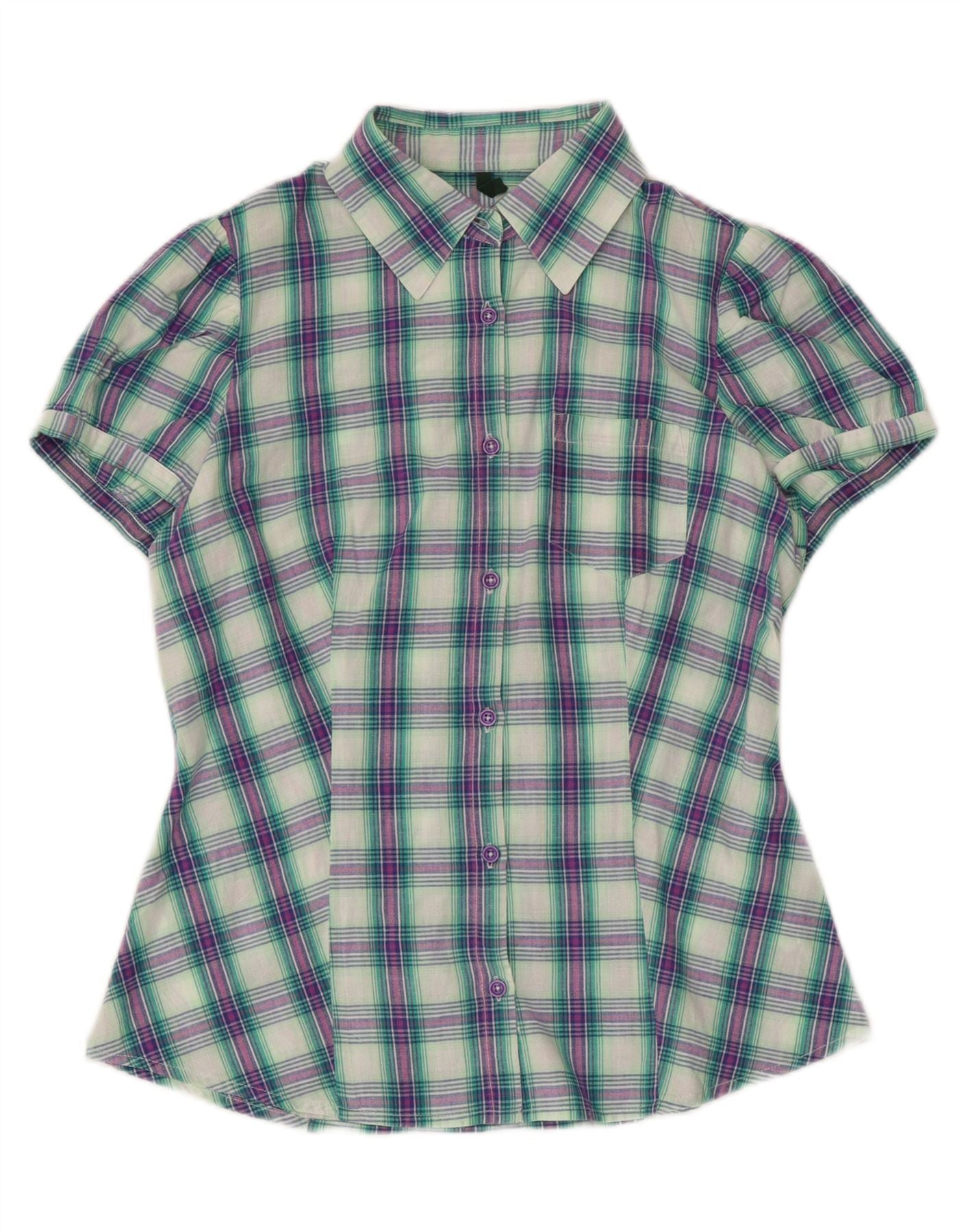 BENETTON Ženska košulja kratkih rukava UK 14 Srednji raznobojni karirani pamuk