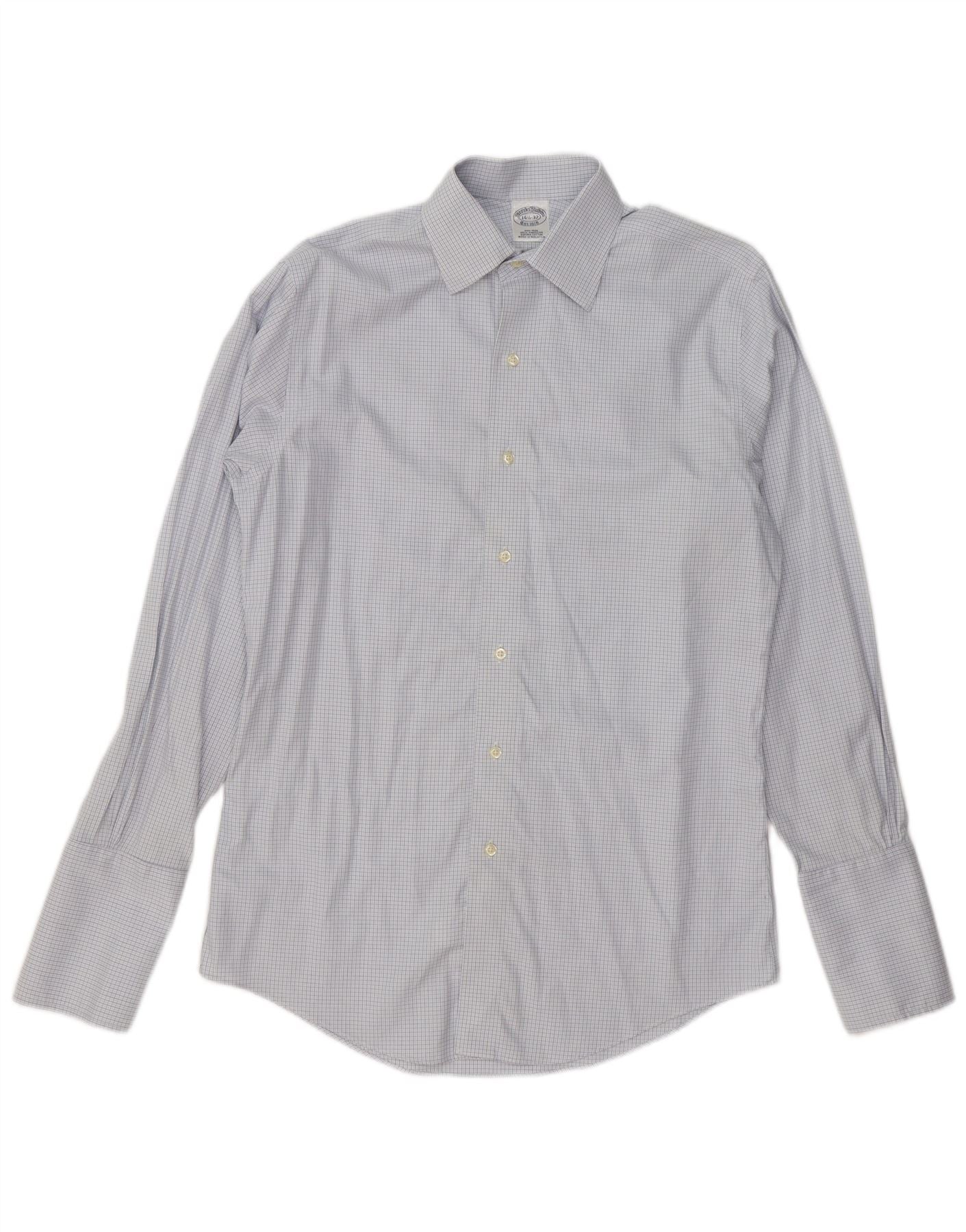 BROOKS BROTHERS Mens Shirt Size 14 1/2 Small Blue Check Cotton