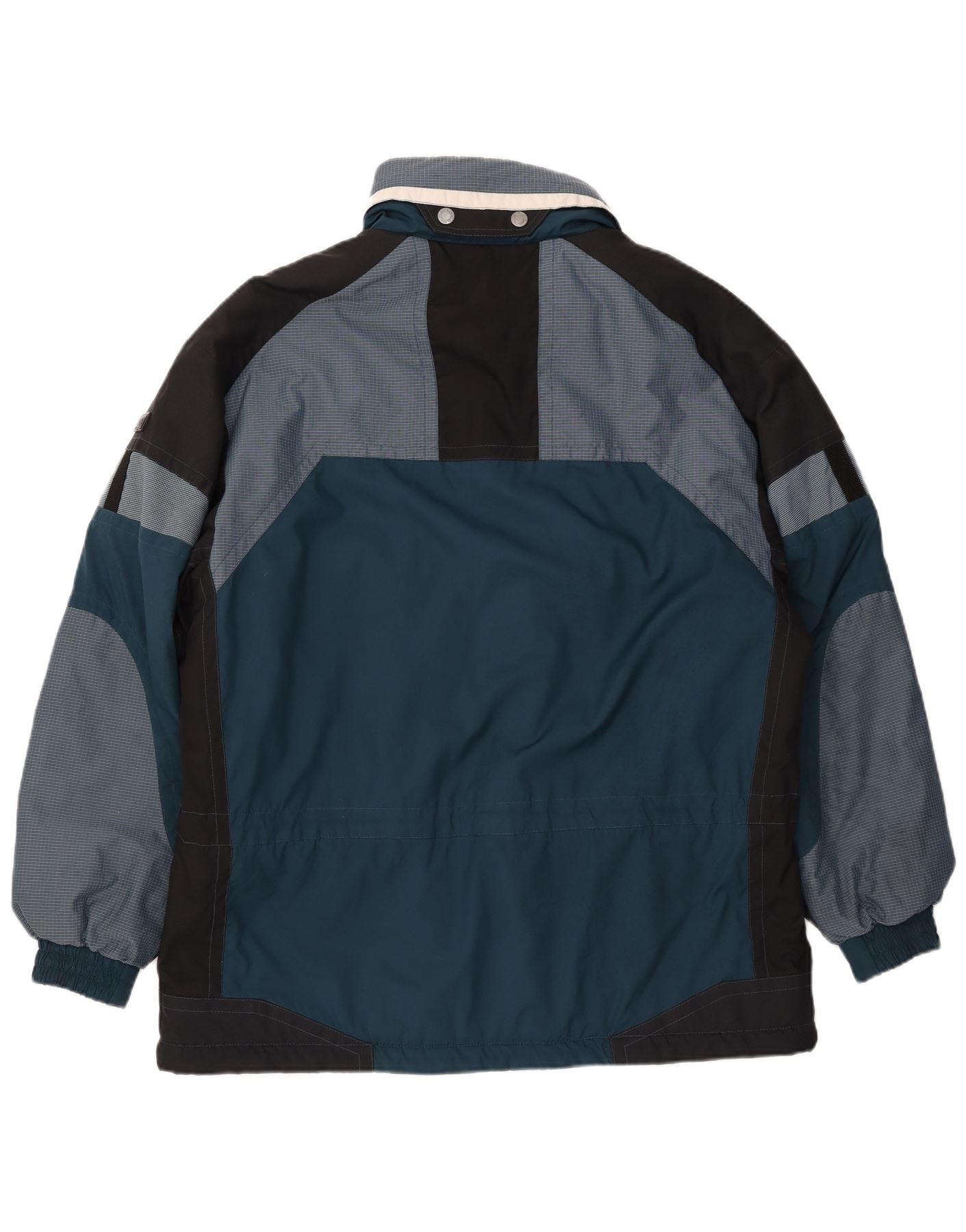 - AI opis: Ova Rodeo muška anorak jakna izrađena je od izdržljive mješavine poliestera i najlona, nudeći tkanu teksturu otpornu na vjetar. Ima upečatljivo plavo glavno tijelo s kontrastnim crnim i sivim pločama. Sivi dijelovi prikazuju suptilan geometrijski uzorak. Visok ovratnik i potpuno zatvaranje patentnim zatvaračem pružaju izvrsnu zaštitu. Dugi rukavi i pravilan kroj osiguravaju udobnost. Višestruki džepovi dodaju praktičnu korisnost, što ga čini idealnim za zimske sportove.