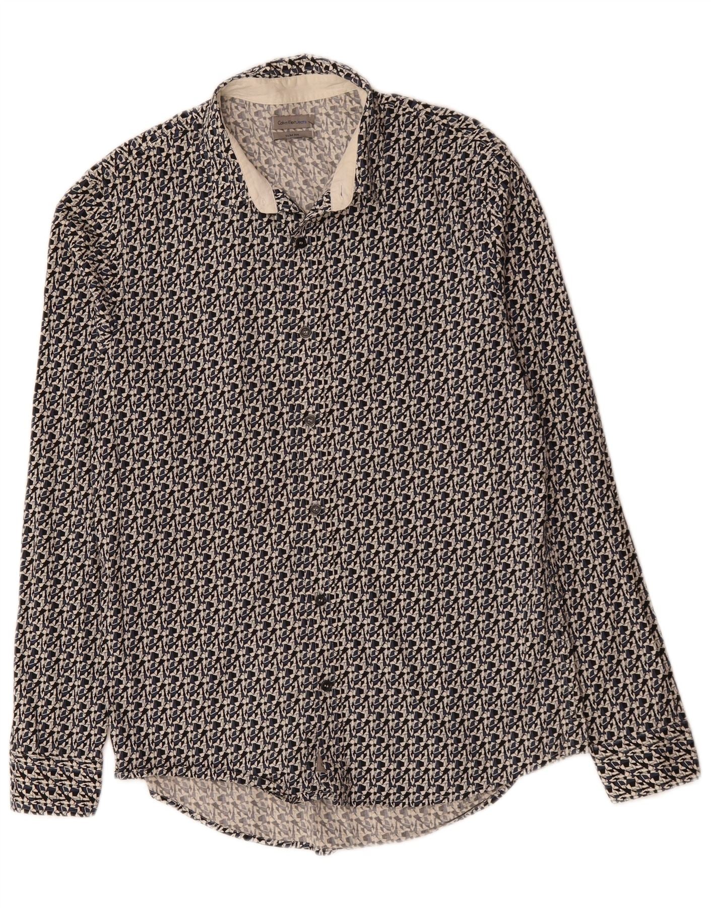 CALVIN KLEIN JEANS Muška uska košulja Srednji crni geometrijski pamuk