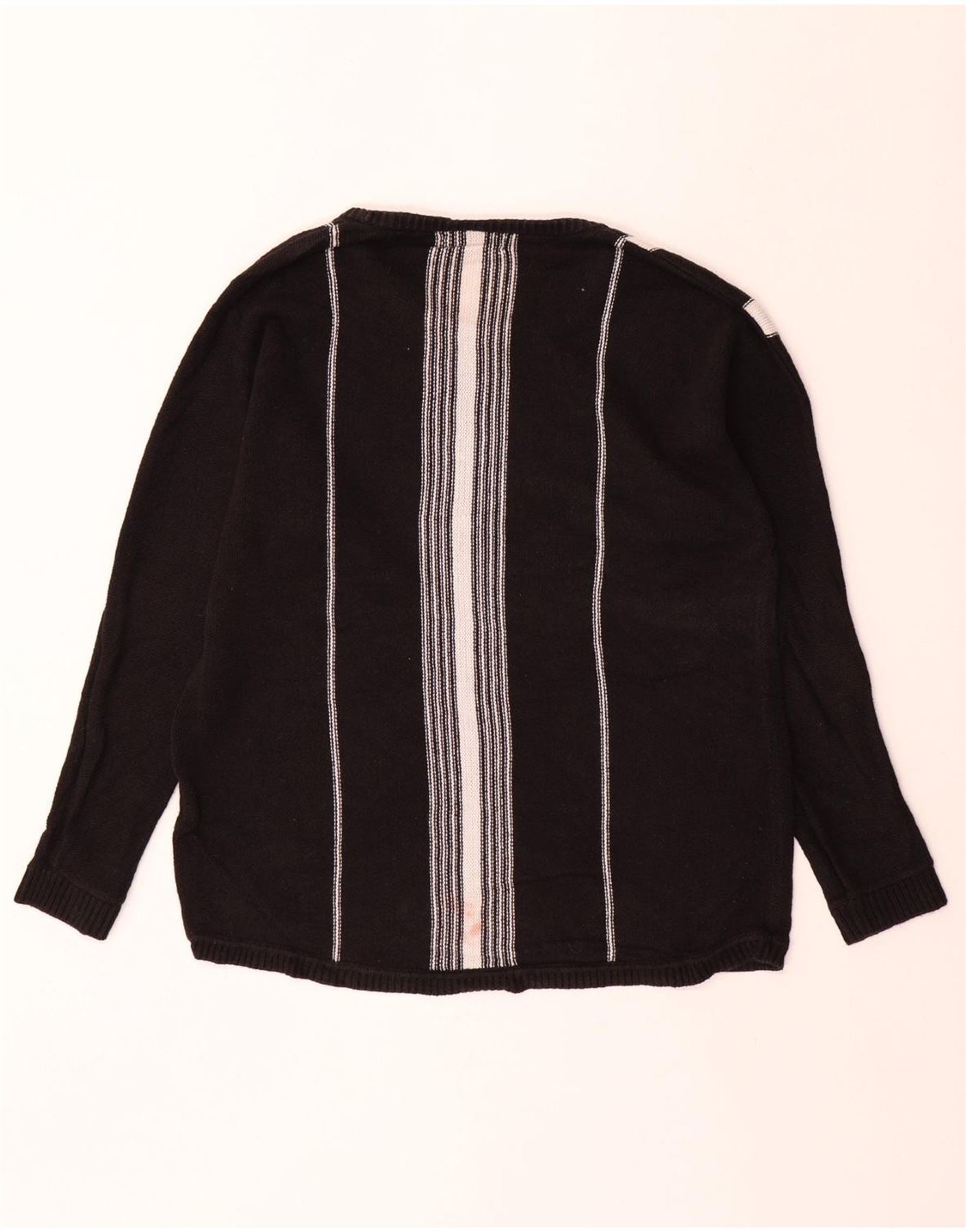 CALVIN KLEIN Muški džemper s veznim izrezom srednje veličine, pamuk na crne pruge
