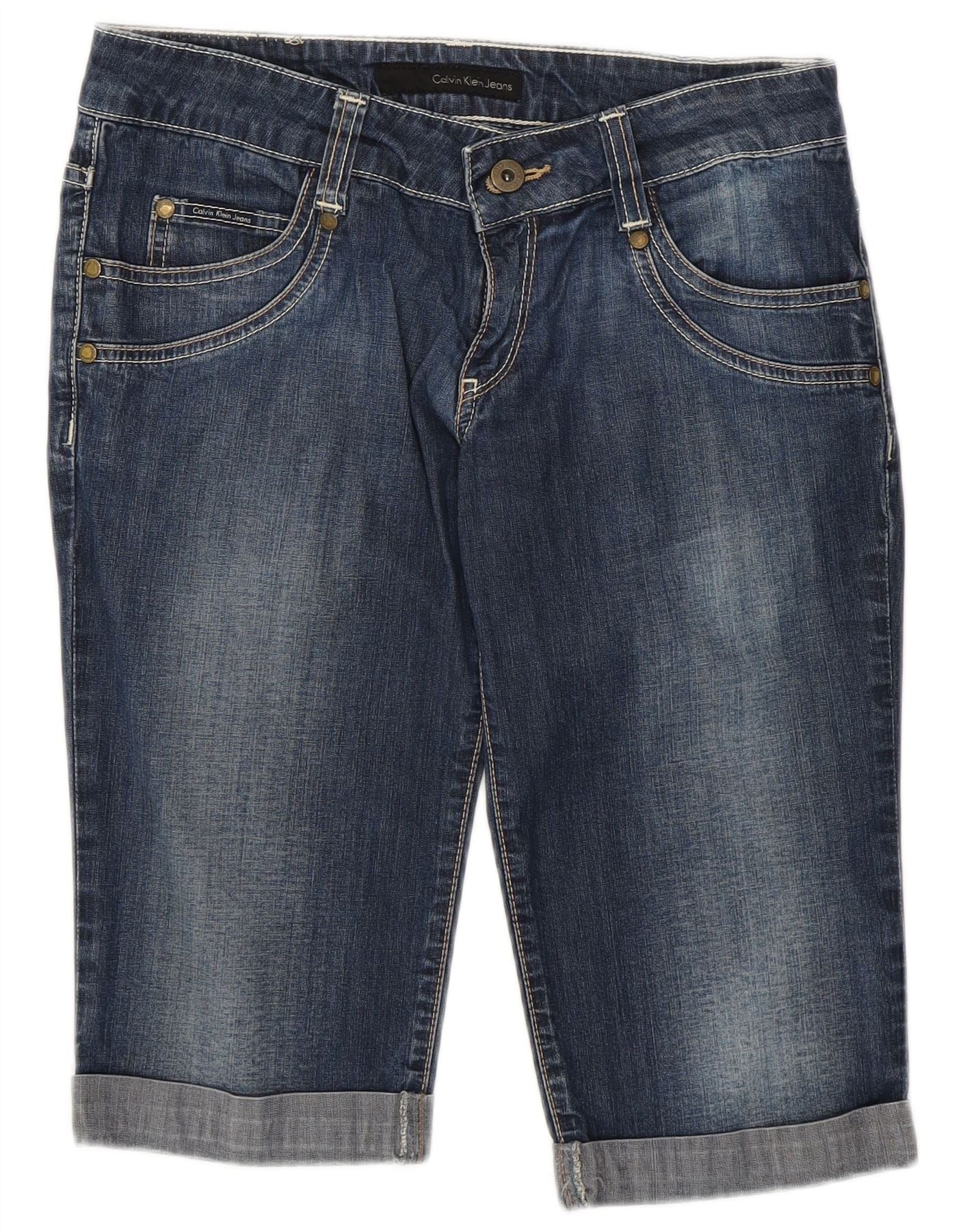 CALVIN KLEIN Ženske traper kratke hlače W28 srednje tamnoplavi pamuk