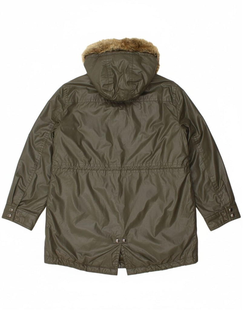 CALVIN KLEIN Womens Hooded Parka Jacket UK 16 Large Khaki Cotton