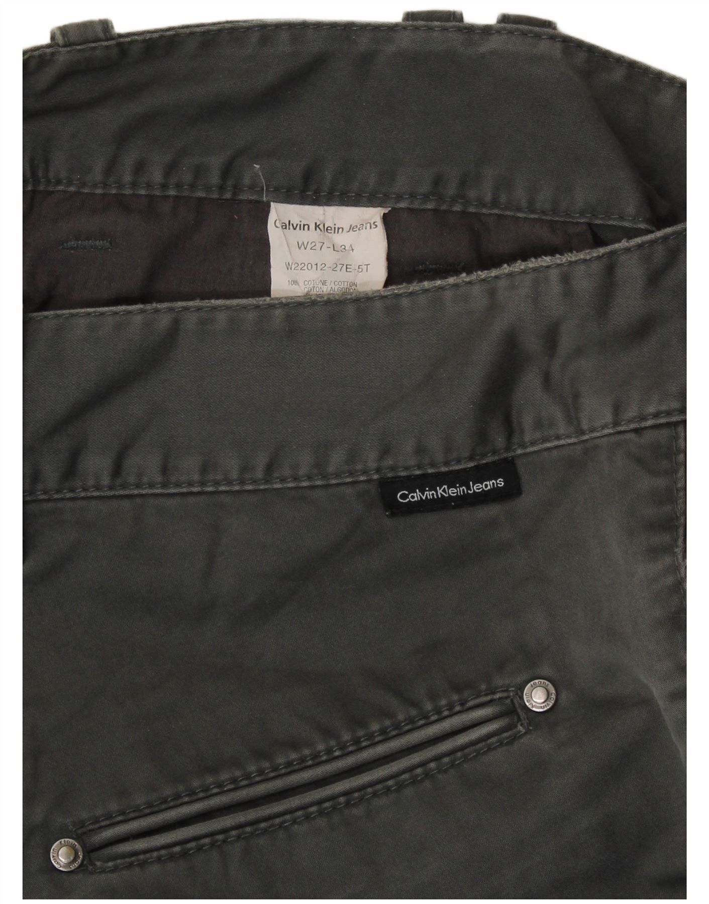 CALVIN KLEIN Ženske ravne ležerne hlače W27 L34 Sivi pamuk