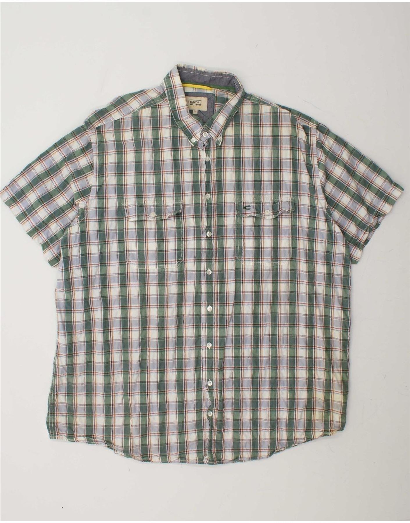 - AI Description: This Camel Active men's shirt features a classic multicoloured plaid pattern on a woven fabric. The collared neckline and short sleeves offer a traditional, comfortable fit. A full button-up front ensures versatile styling. Practical pockets enhance its utility design. The regular fit ensures ease of movement and a relaxed silhouette.