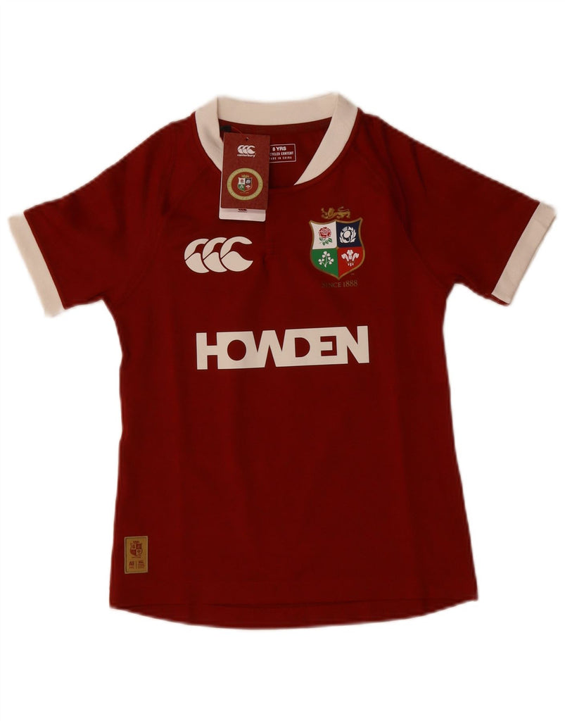 - AI Description: This Canterbury boys' Rugby Polo Shirt is crafted from breathable, lightweight jersey fabric. It comes in a rich maroon colour. The collared V-neckline offers a classic look. Short sleeves and a regular fit ensure comfort and ease of movement. A prominent British & Irish Lions logo accents the design, perfect for young rugby enthusiasts. This pullover style is both practical and stylish.