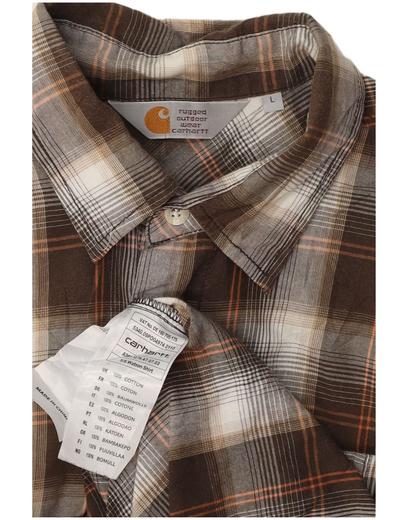 Home > Vintage Carhartt odjeća > muški > CARHARTT muška košulja kratkih rukava, pamuk, veliki smeđi karirani komad