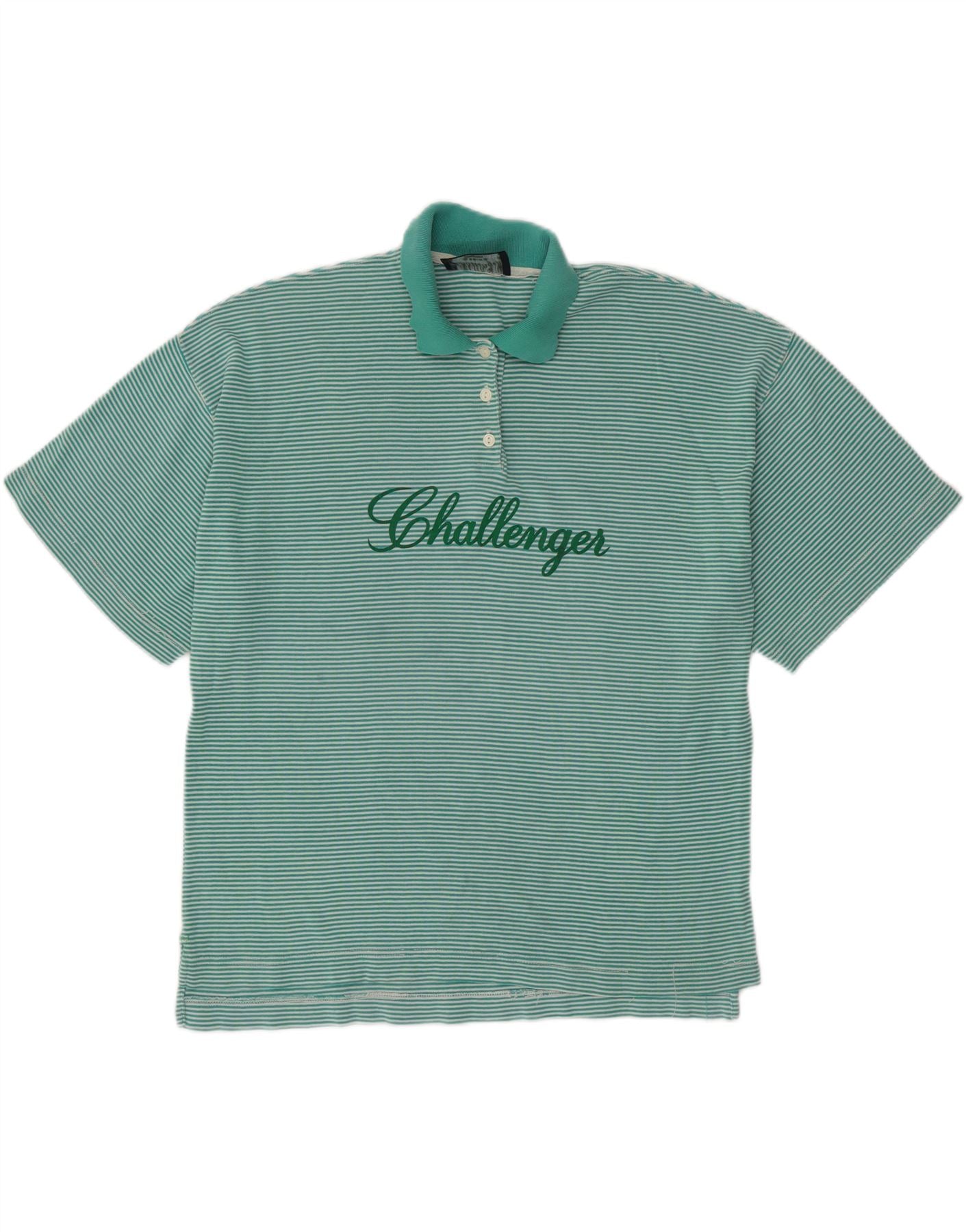 CHALLENGER ženska prevelika polo majica UK 14 srednje tirkizne pruge
