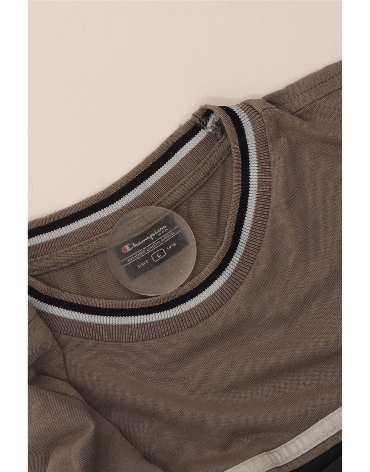 - Stanje: Pošteno korišteno stanje: predmet je često nošen i može imati brojne nedostatke - Blijeda boja. Rupa na prednjoj strani. Oznaka na prednjoj strani.