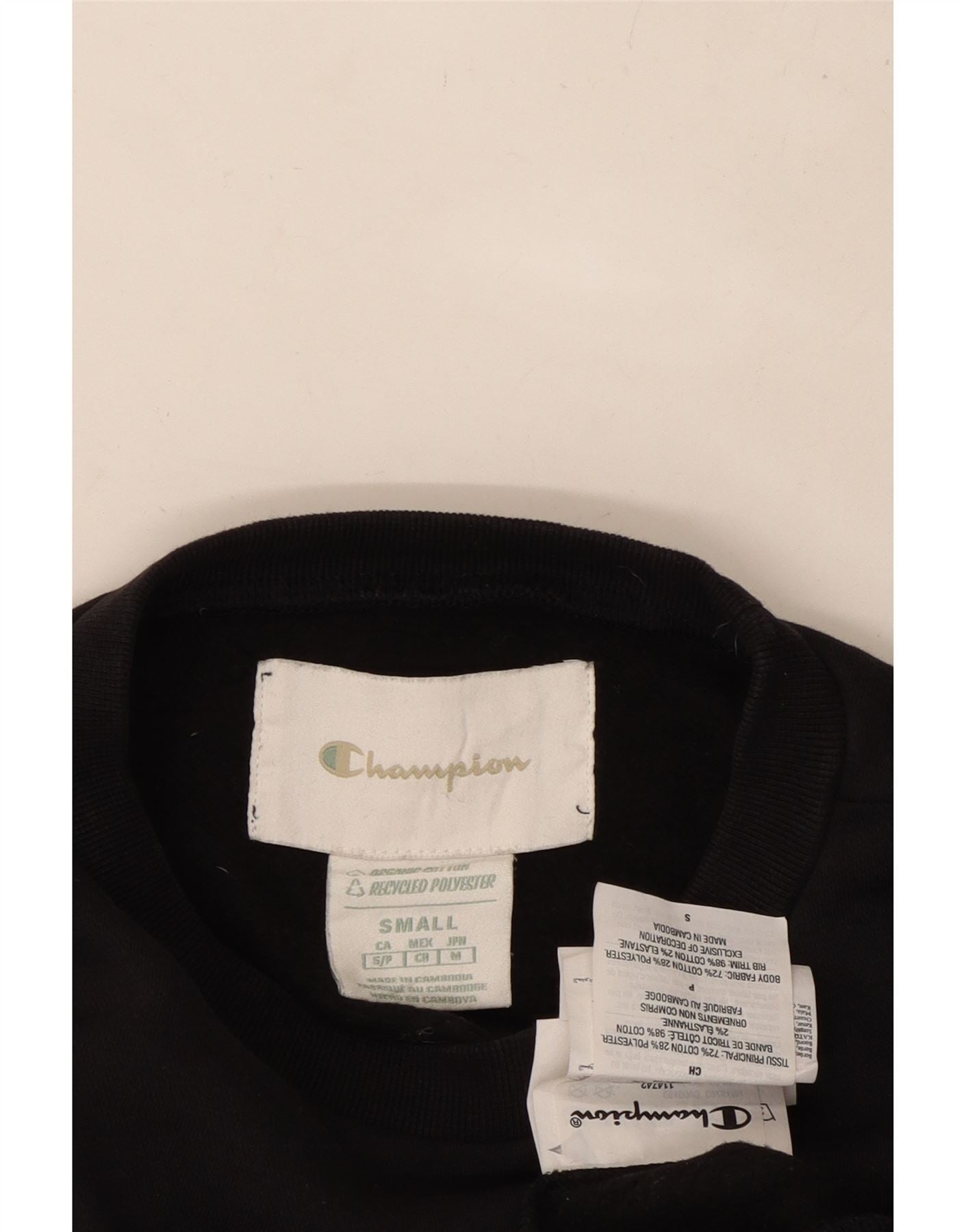 Home > Vintage Champion odjeća > Ženski > Sweatshirts > CHAMPION Ženska kratka prekomjerna majica s kratkim rukavima UK 10 Mali crni pamuk