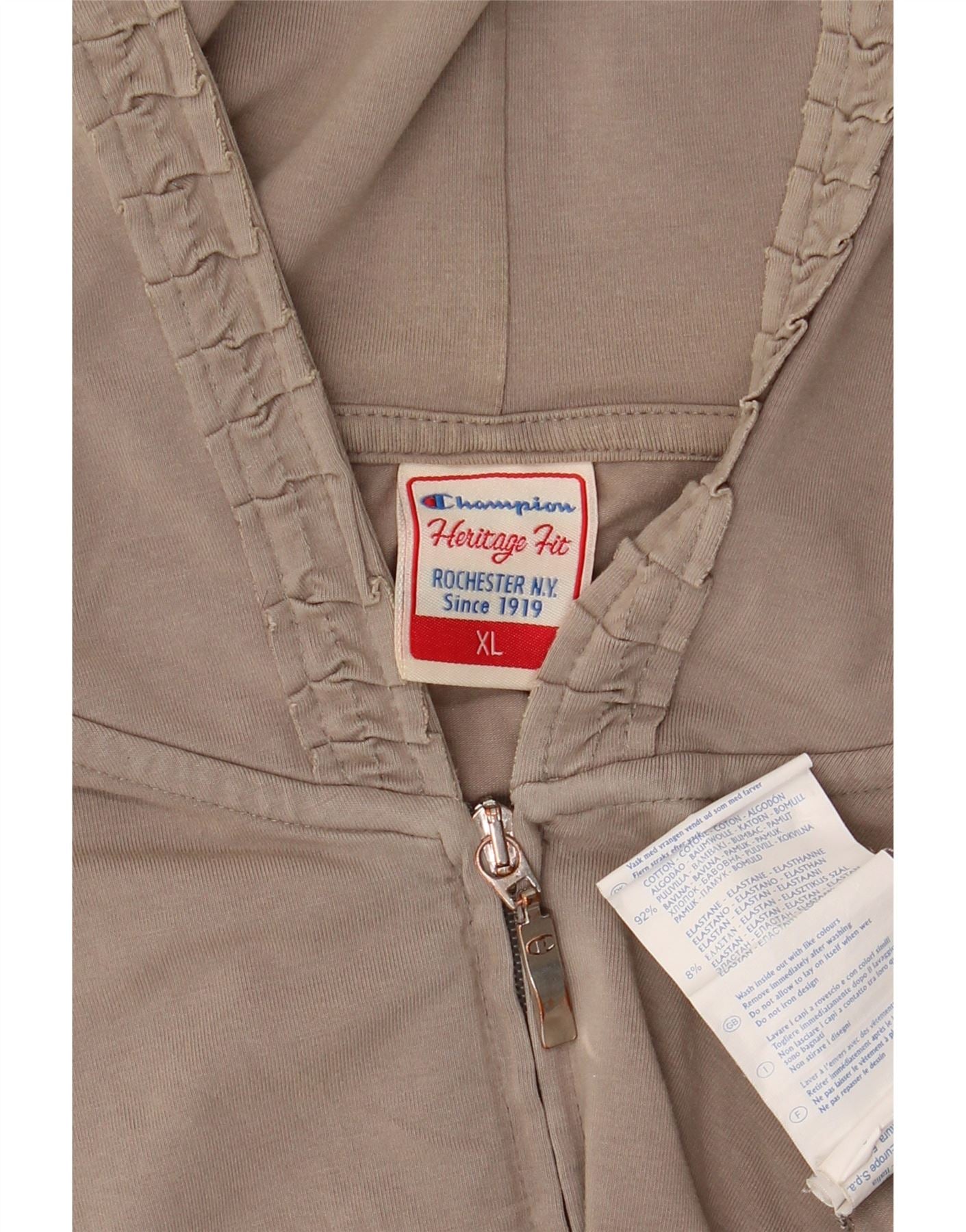 Home > Vintage Champion odjeća > Ženski > majica s kapuljačom > CHAMPION Ženski Heritage Fit pulover s kapuljačom s patentnim zatvaračem UK 18 XL Bež pamuk