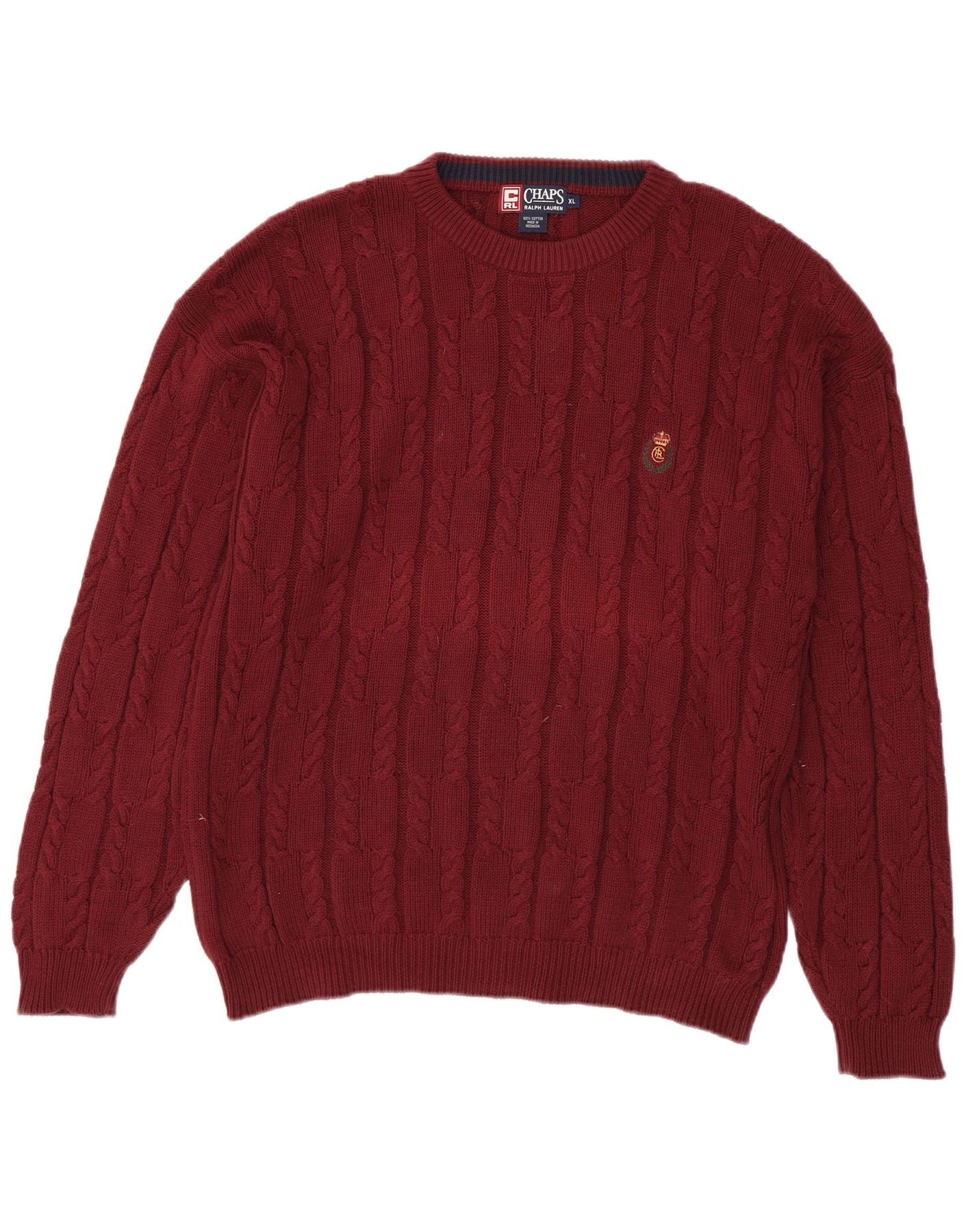 CHAPS RALPH LAUREN Muški pulover s okruglim izrezom XL tamnocrveni pamuk