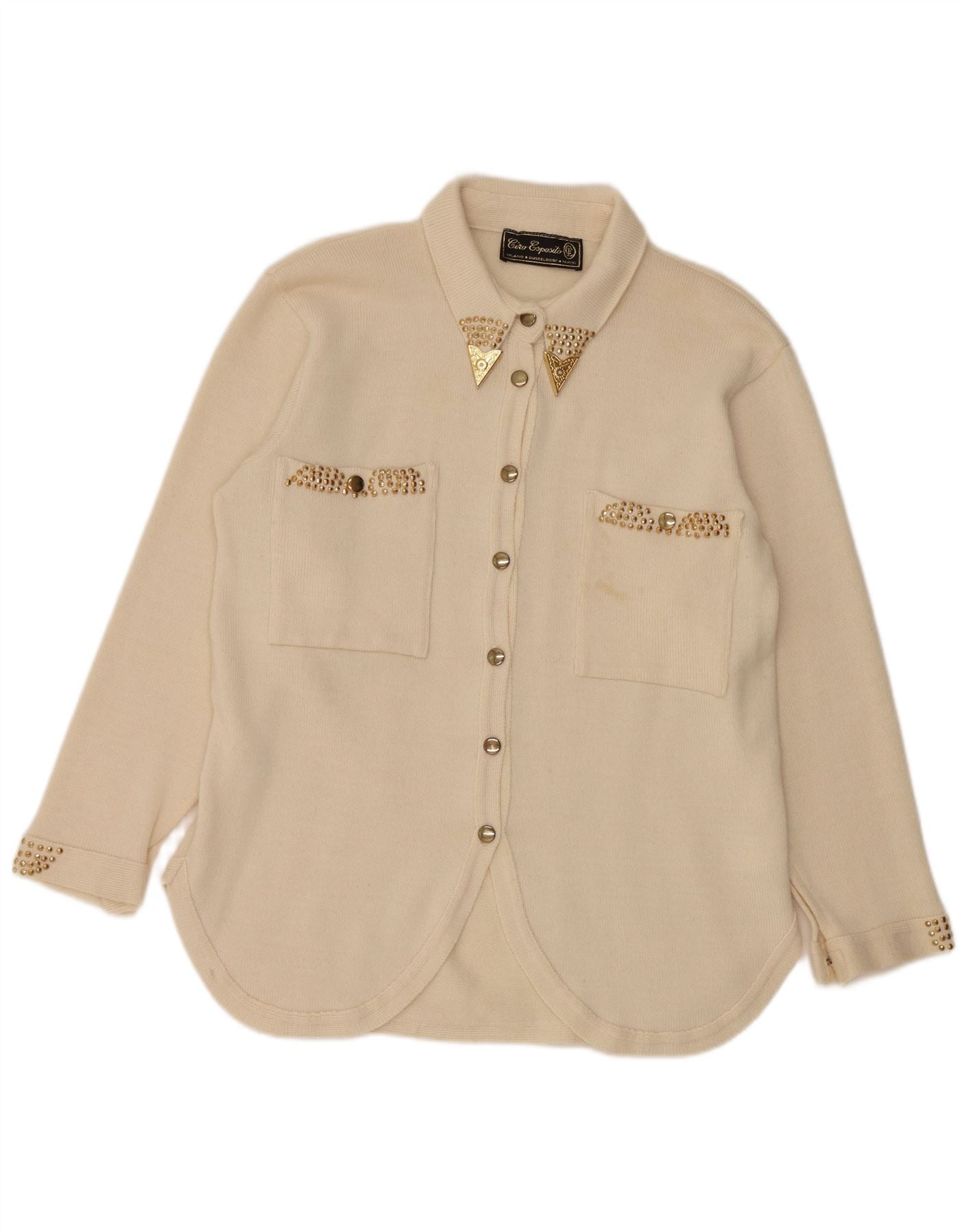 CIRO ESPOSITO Ženska pletena košulja bluza UK 14 Large Off White Wool