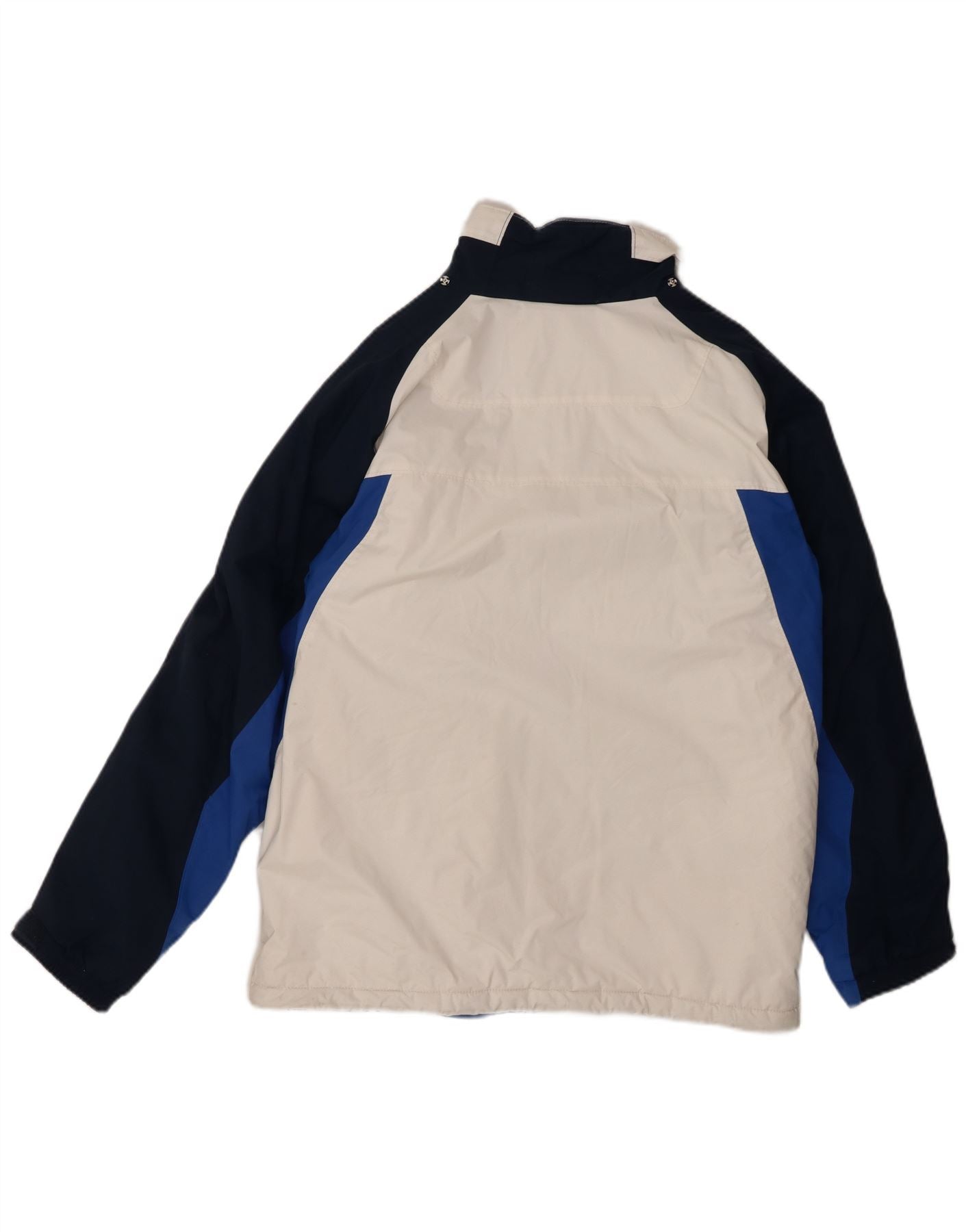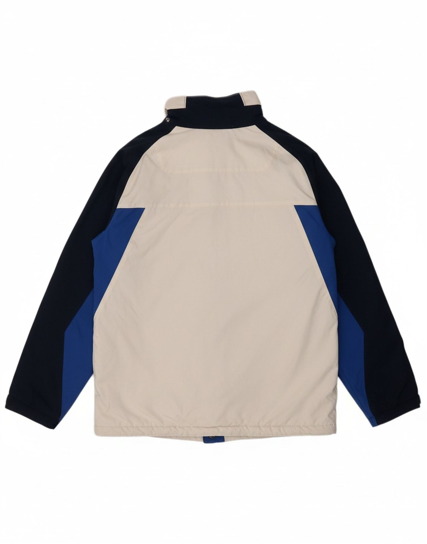 - AI Description: This Columbia mens Padded Jacket is crafted from durable nylon, offering a smooth, weather-resistant finish. It features a striking colourblock pattern in white, blue, and navy blue. The collared neckline and full zip closure provide excellent protection. Long sleeves and a regular fit ensure comfort and mobility. Practical pockets and adjustable features complete this functional, stylish piece.