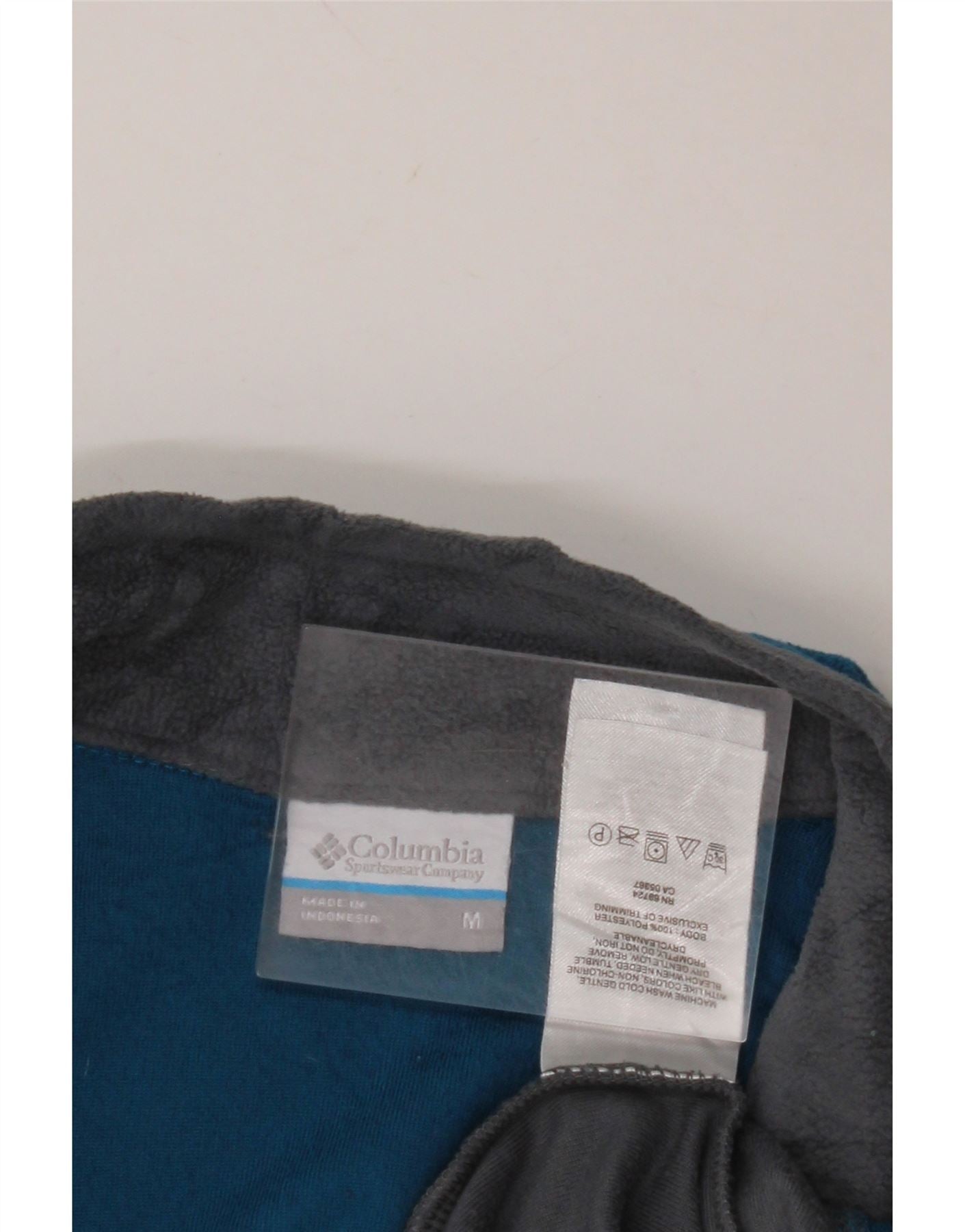 COLUMBIA Mens Zip Neck Fleece Jumper Medium Blue Colourblock Polyester