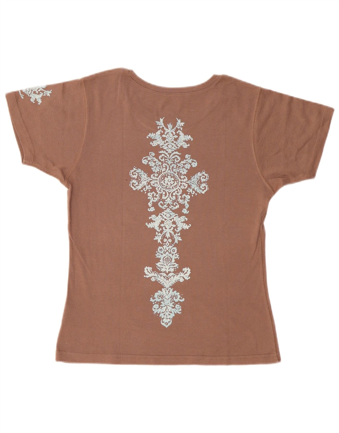 COLUMBIA Womens Graphic T-Shirt Top UK 12 Medium Brown Paisley Cotton