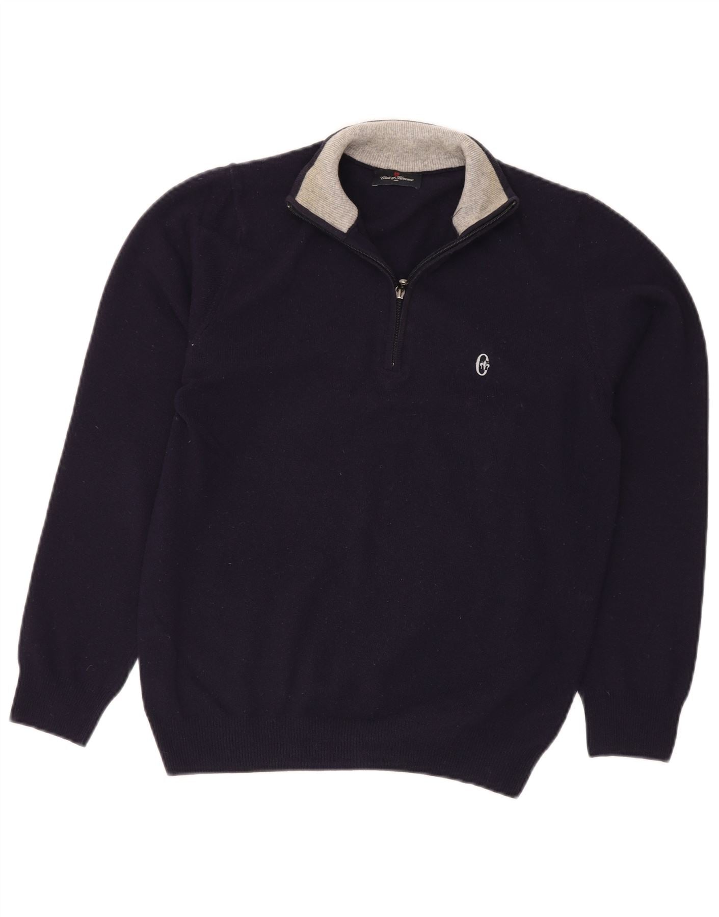 CONTE OF FLORENCE Muški džemper s izrezom i malim tamnoplavim vunenim puloverom