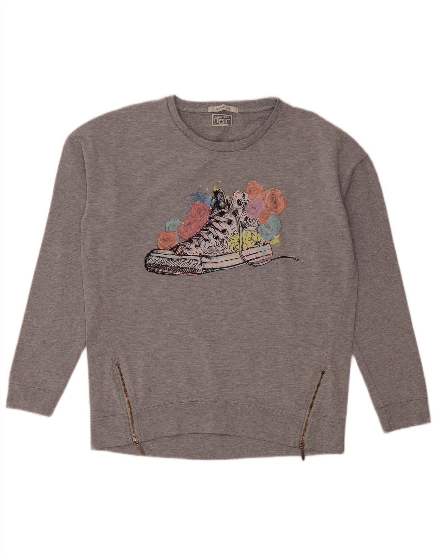 CONVERSE Ženski džemper s grafičkim motivima UK 14 srednje sivi pamuk