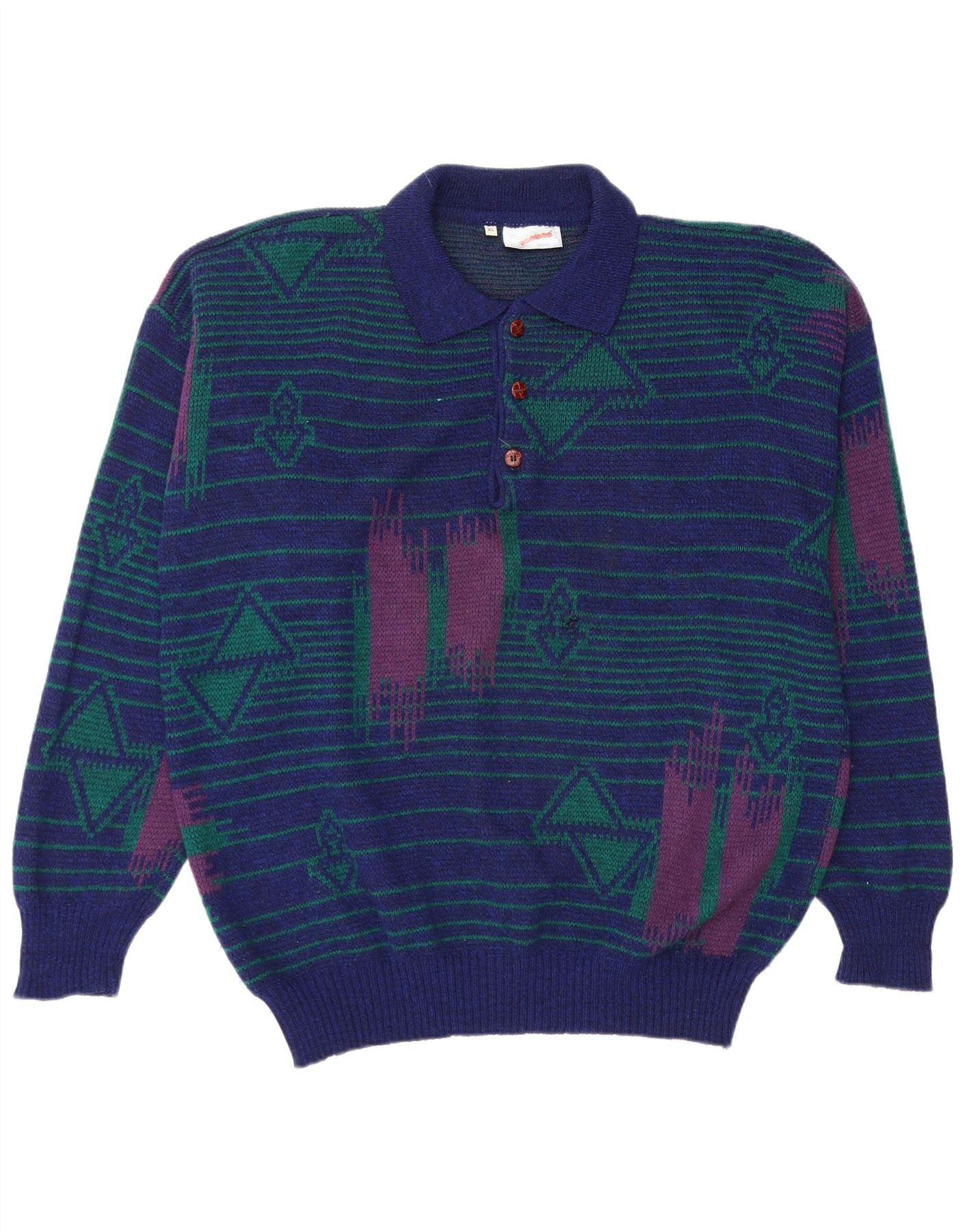 COSMOS muški pulover s polo ovratnikom XL tamnoplavi geometrijski akril