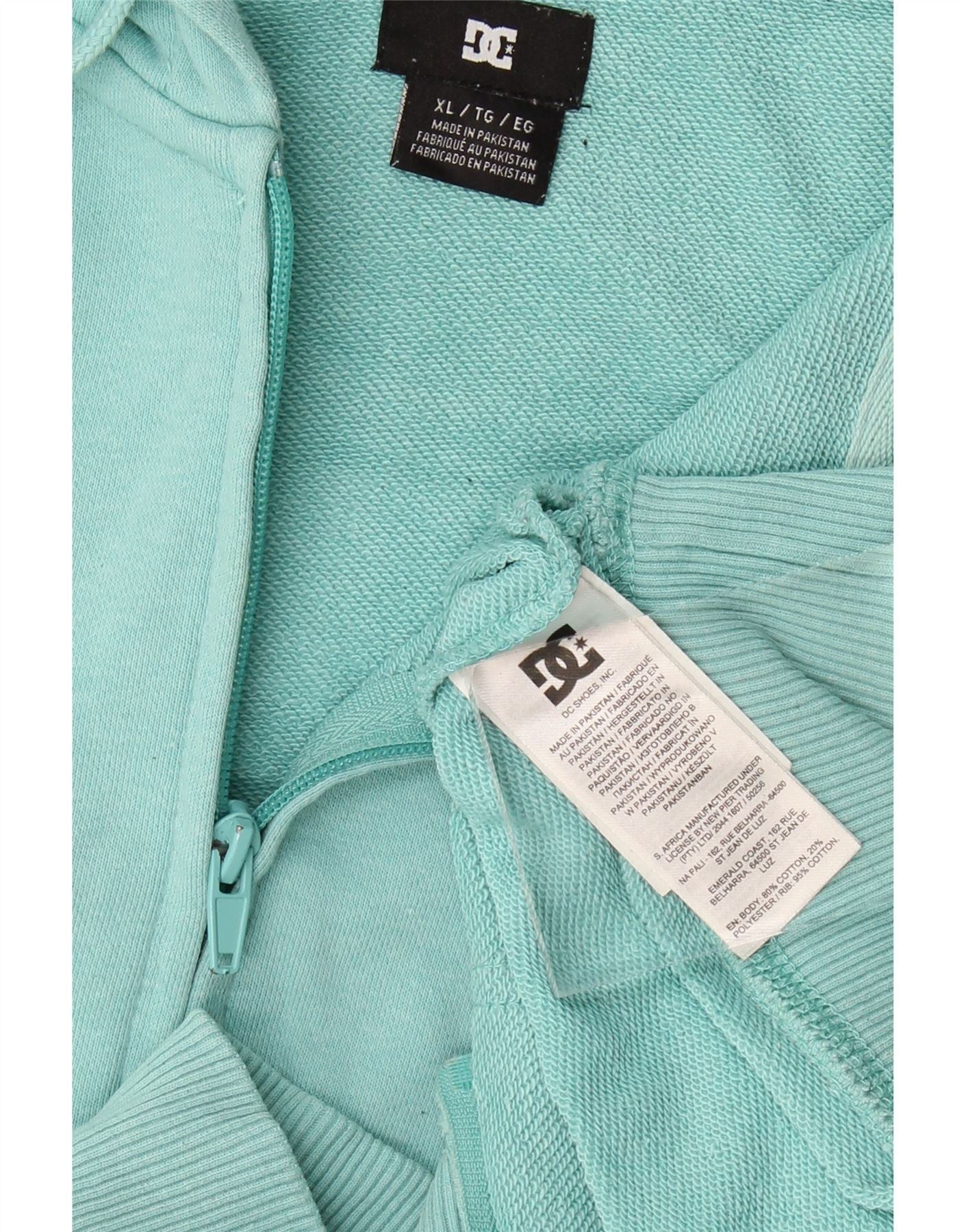 - AI Description: This DC mens Zip Hoodie Sweater is crafted from a comfortable cotton blend fabric. Its vibrant turquoise hue is complemented by a distinctive graphic and logo accent. The hooded design offers extra warmth, while the full zip closure provides versatile styling. Long sleeves and a regular fit ensure comfort. Practical pockets complete the design, making it ideal for everyday wear.