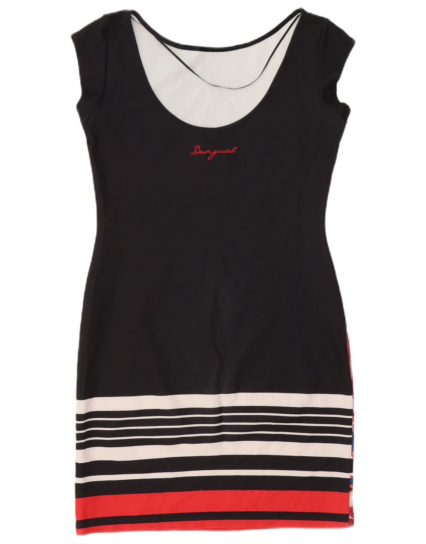 DESIGUAL ženska haljina uz kroj UK 12 Srednje crna cvjetna poliesterska haljina