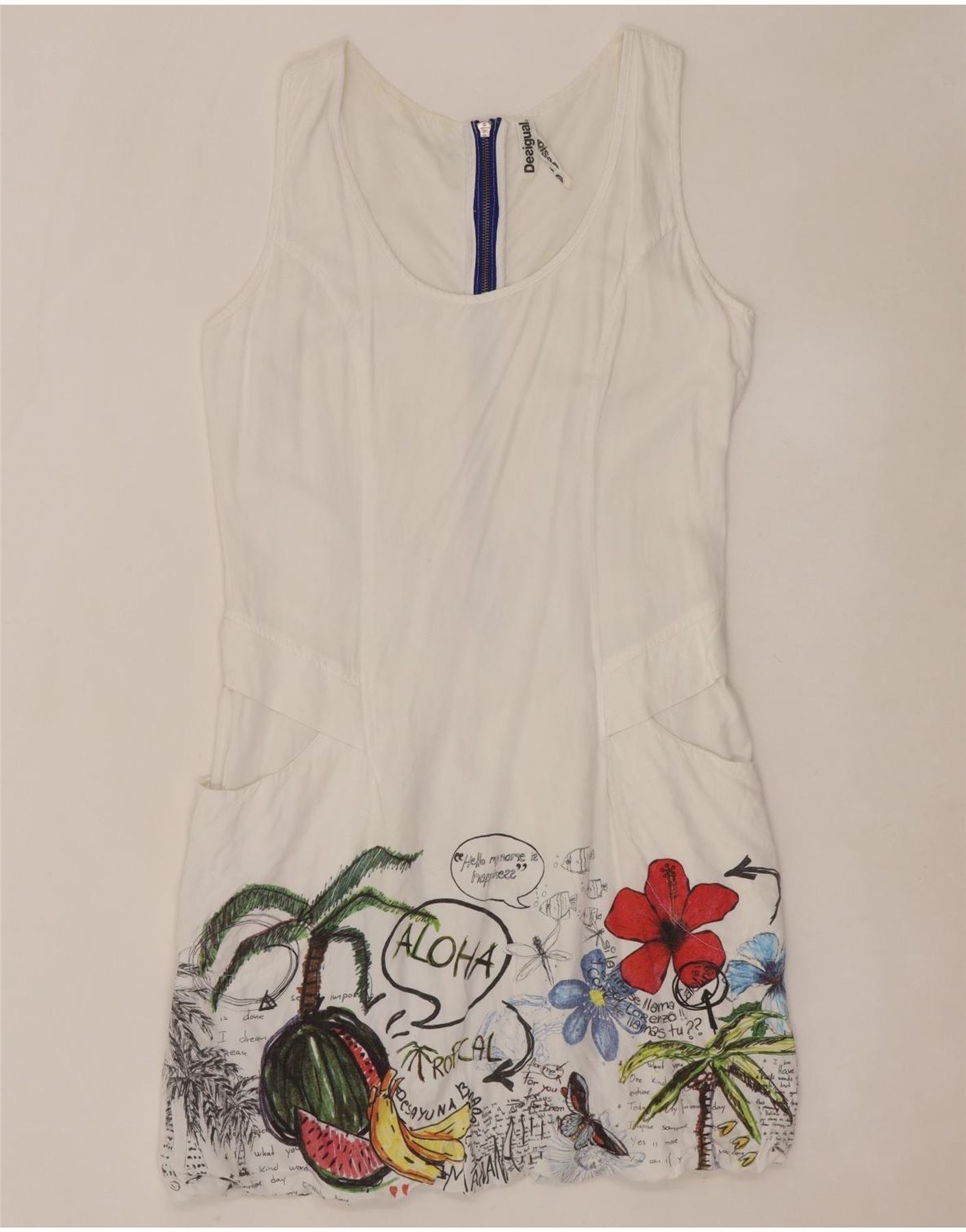 DESIGUAL Ženska haljina s mjehurićima bez rukava EU 40 Srednje bijela cvjetna