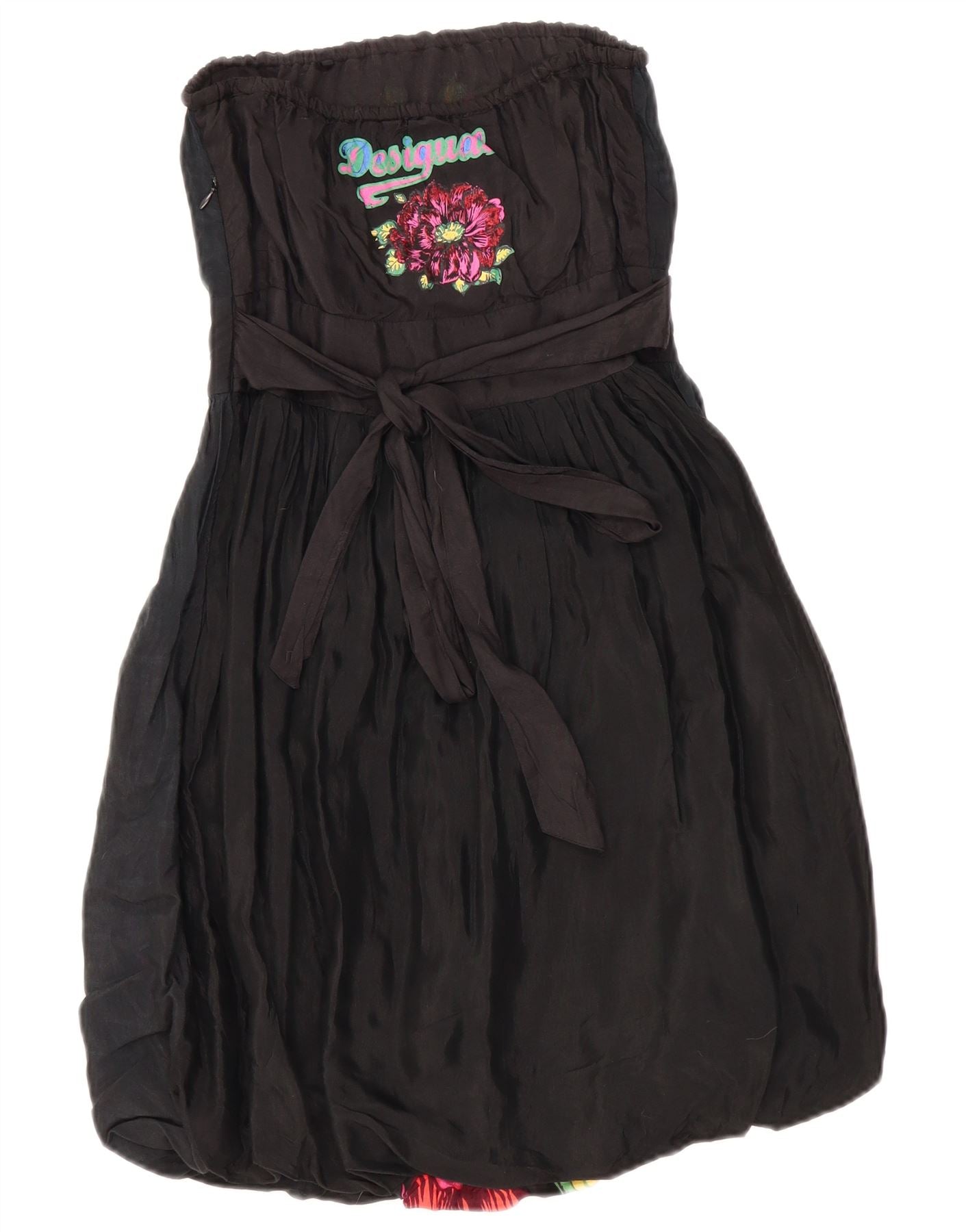 DESIGUAL ženska grafička haljina s mjehurićima bez naramenica EU 38, srednje crna cvjetna