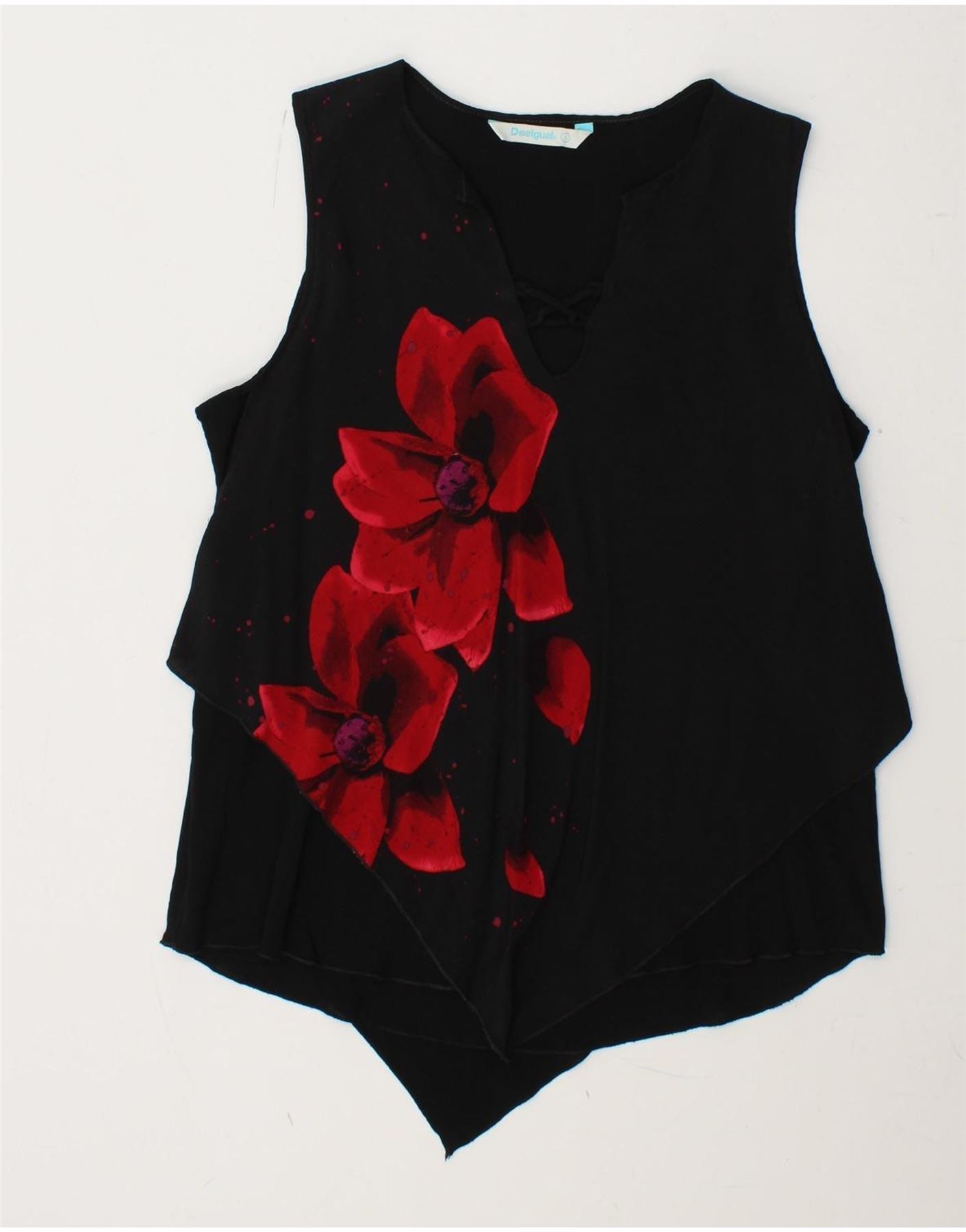 DESIGUAL ženski gornji dio bluze bez rukava UK 14 Veliki crni cvjetni