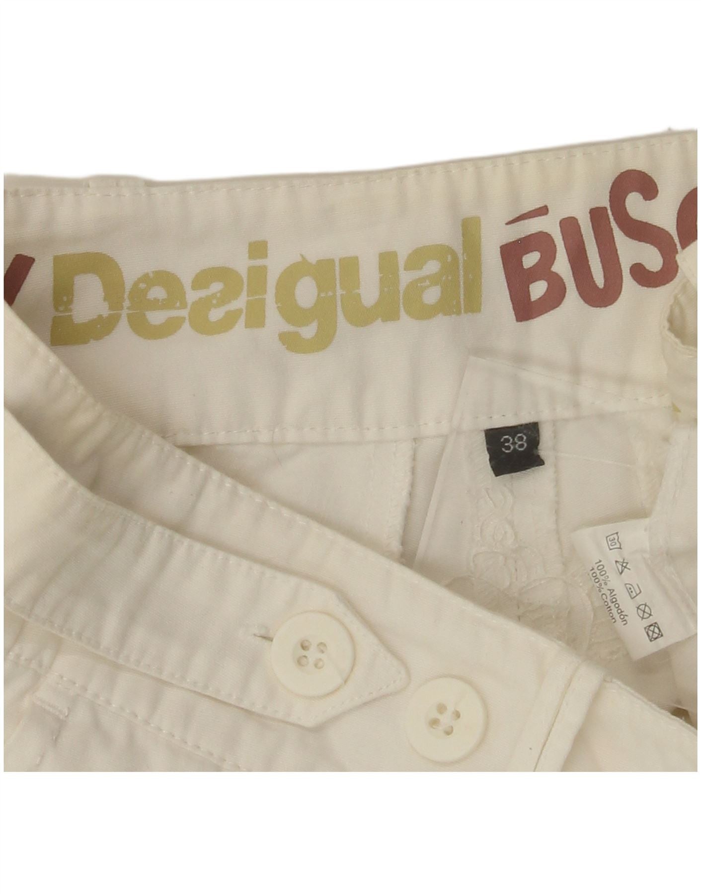 DESIGUAL Ženske ravne chino hlače EU 38 Srednje W30 L28 Bijeli pamuk