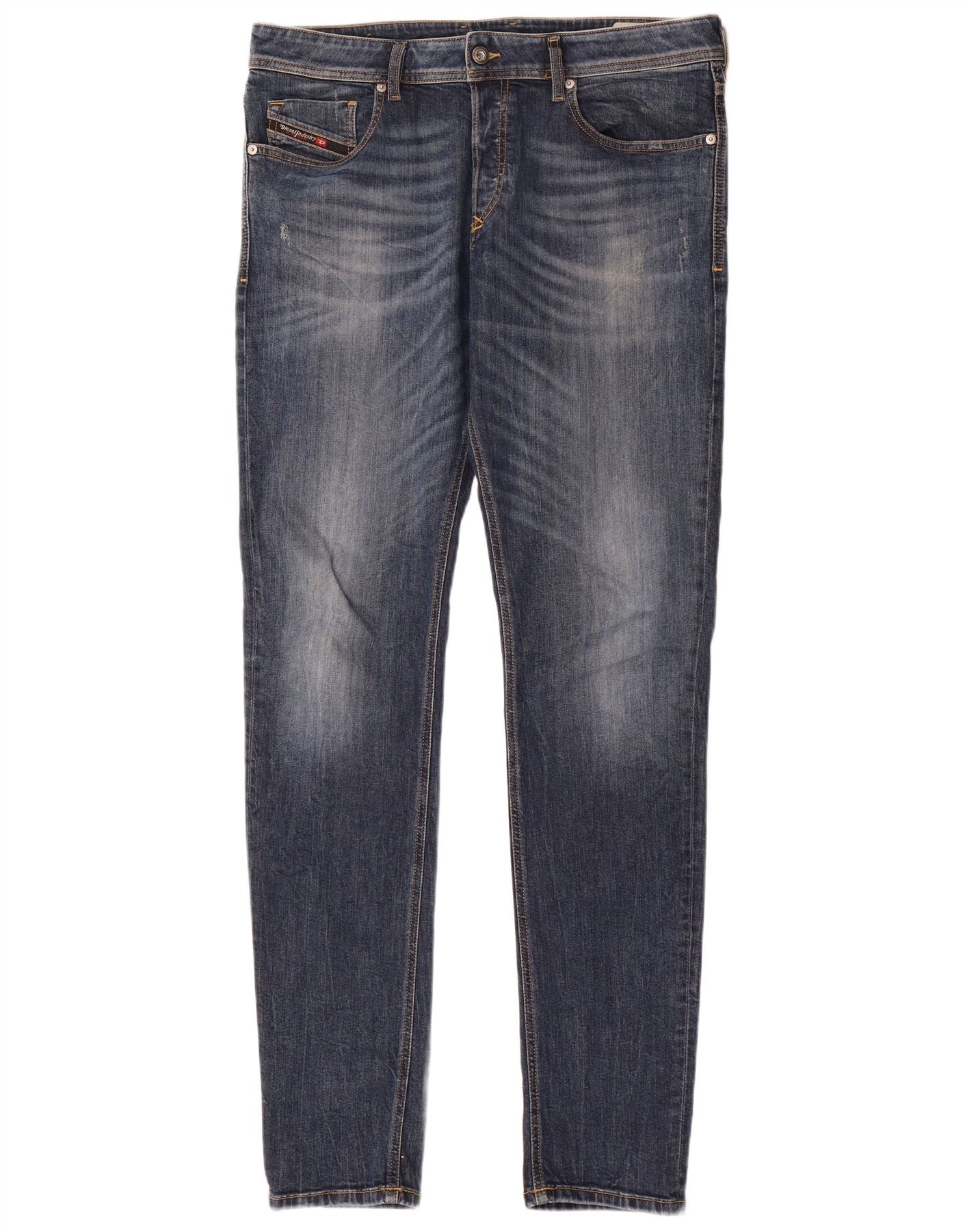 DIESEL Muške uske traperice s oskudima W34 L35 Plavi pamuk