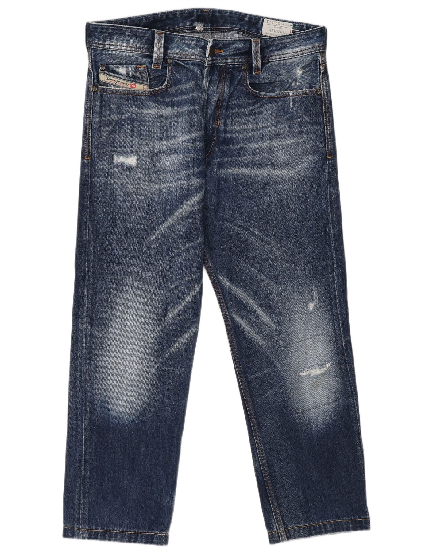 DIESEL Muške traperice Heeven Distressed Straight W32 L27 Plavi pamuk