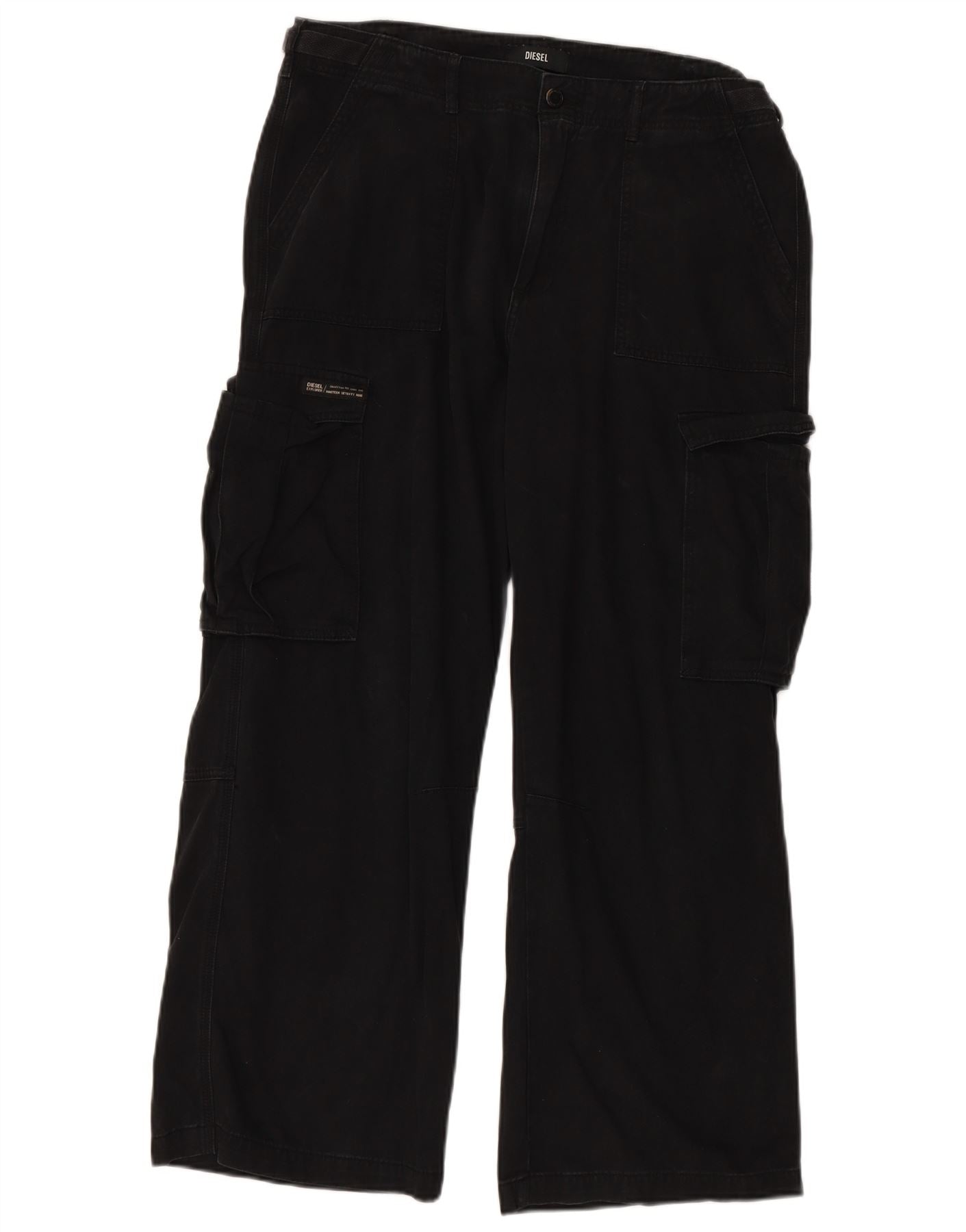 DIESEL Ženske ravne kargo hlače US 16 2XL W36 L30 crni pamuk