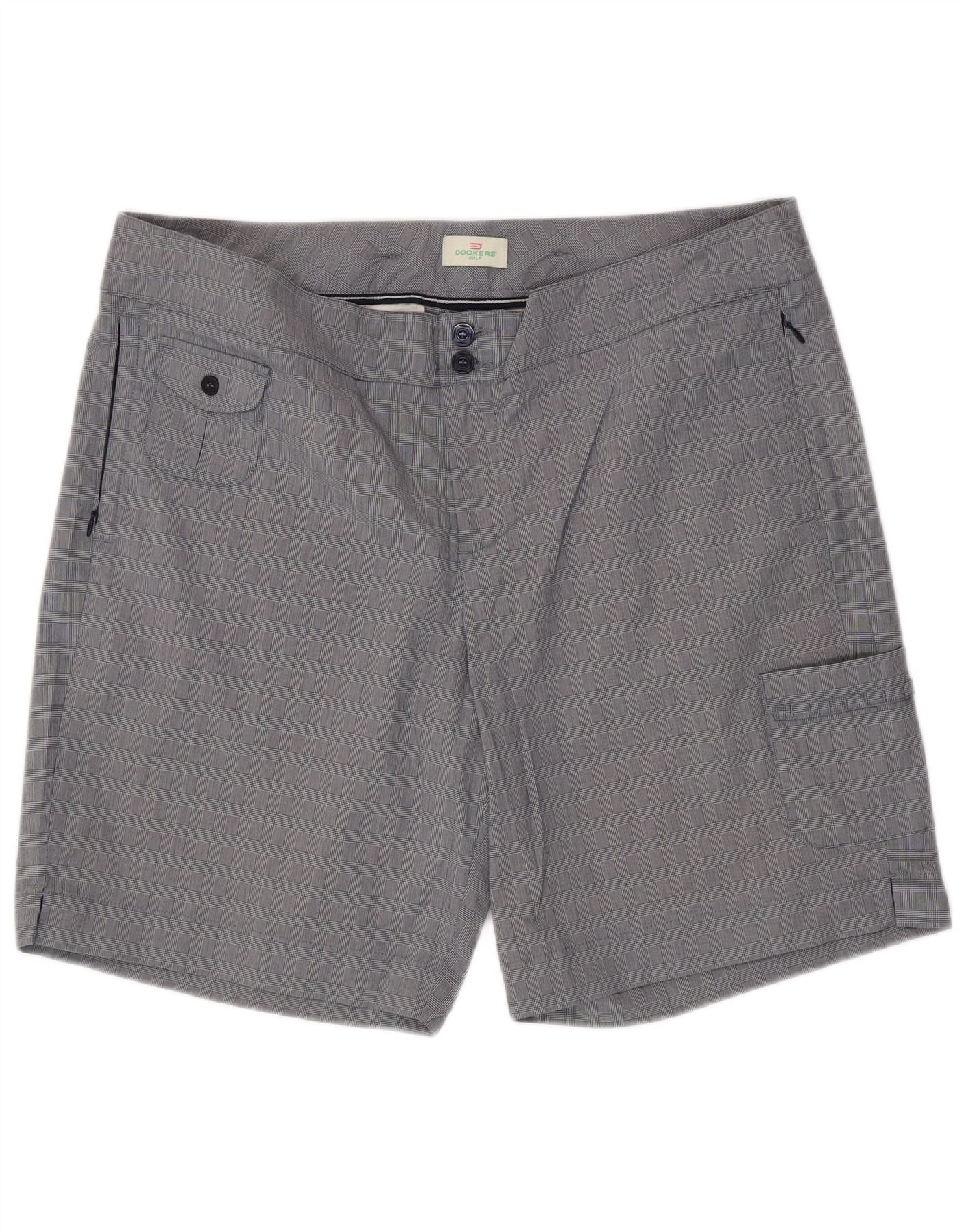 DOCKERS Ženske kargo kratke hlače US 16 2XL W38 plavi karirani pamuk