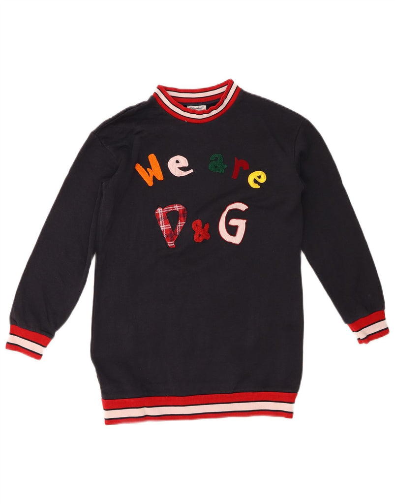 DOLCE & GABBANA Girls Graphic Long Sleeve Jumper Dress 7-8 Years Navy Blue