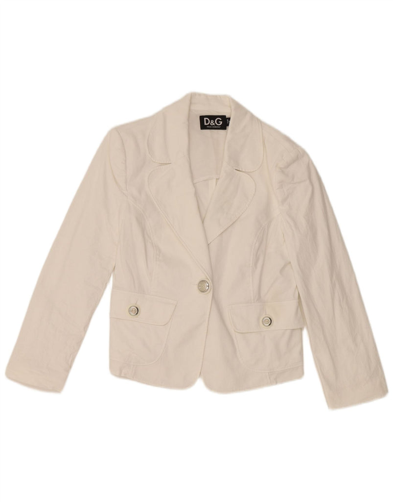 DOLCE & GABBANA Womens 1 Button Blazer Jacket IT 44 Medium White Cotton