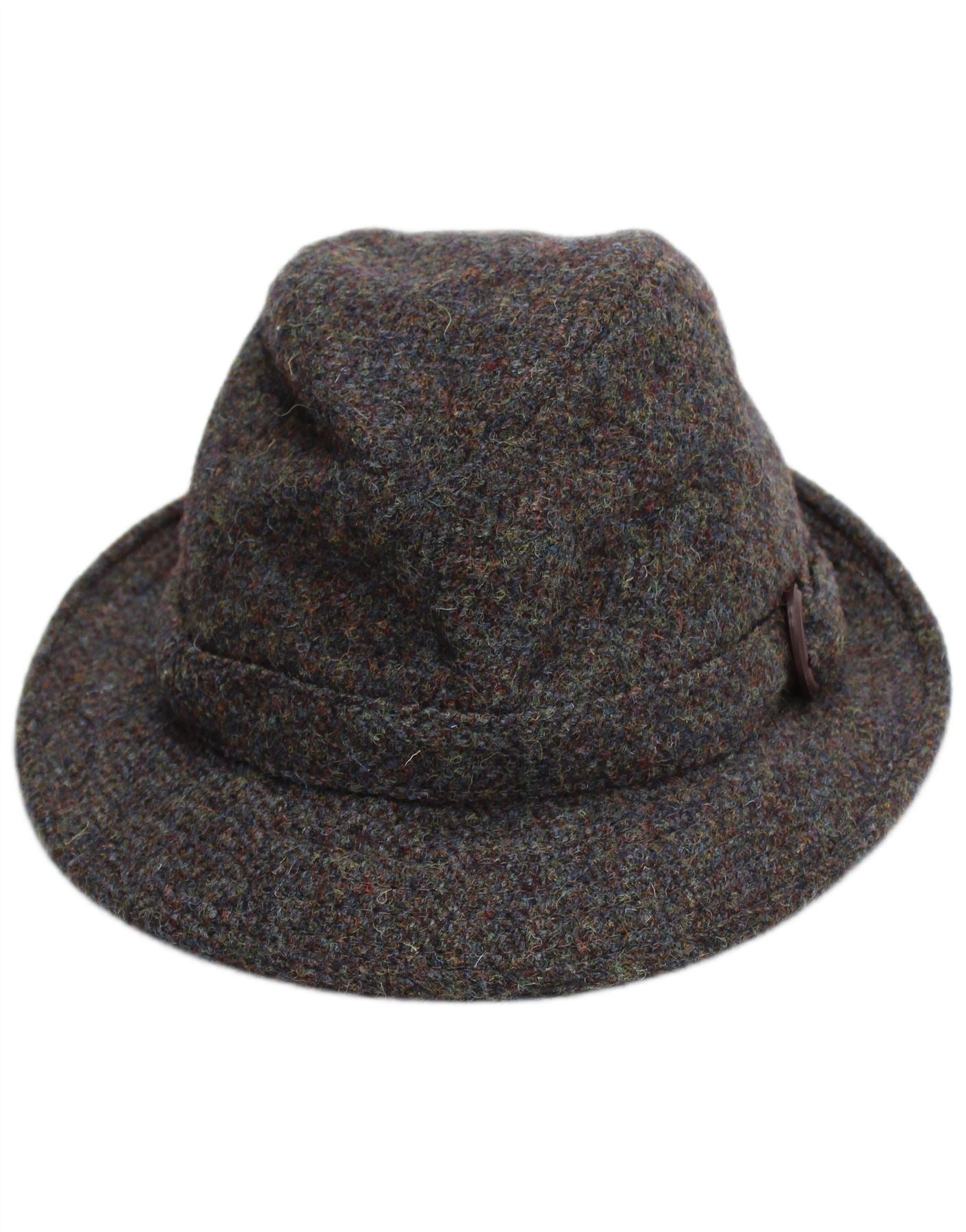 - AI Description: This Dunn &Co mens Fedora Hat is crafted from luxurious Pure New Wool, featuring a distinctive Harris Tweed fabric. Its multicoloured tweed weave blends shades of green, blue, and grey, offering a rich, textured appearance. The classic heritage fit provides a timeless silhouette. A stylish buckle accent adorns the band, adding a refined touch. This hat embodies traditional British craftsmanship.