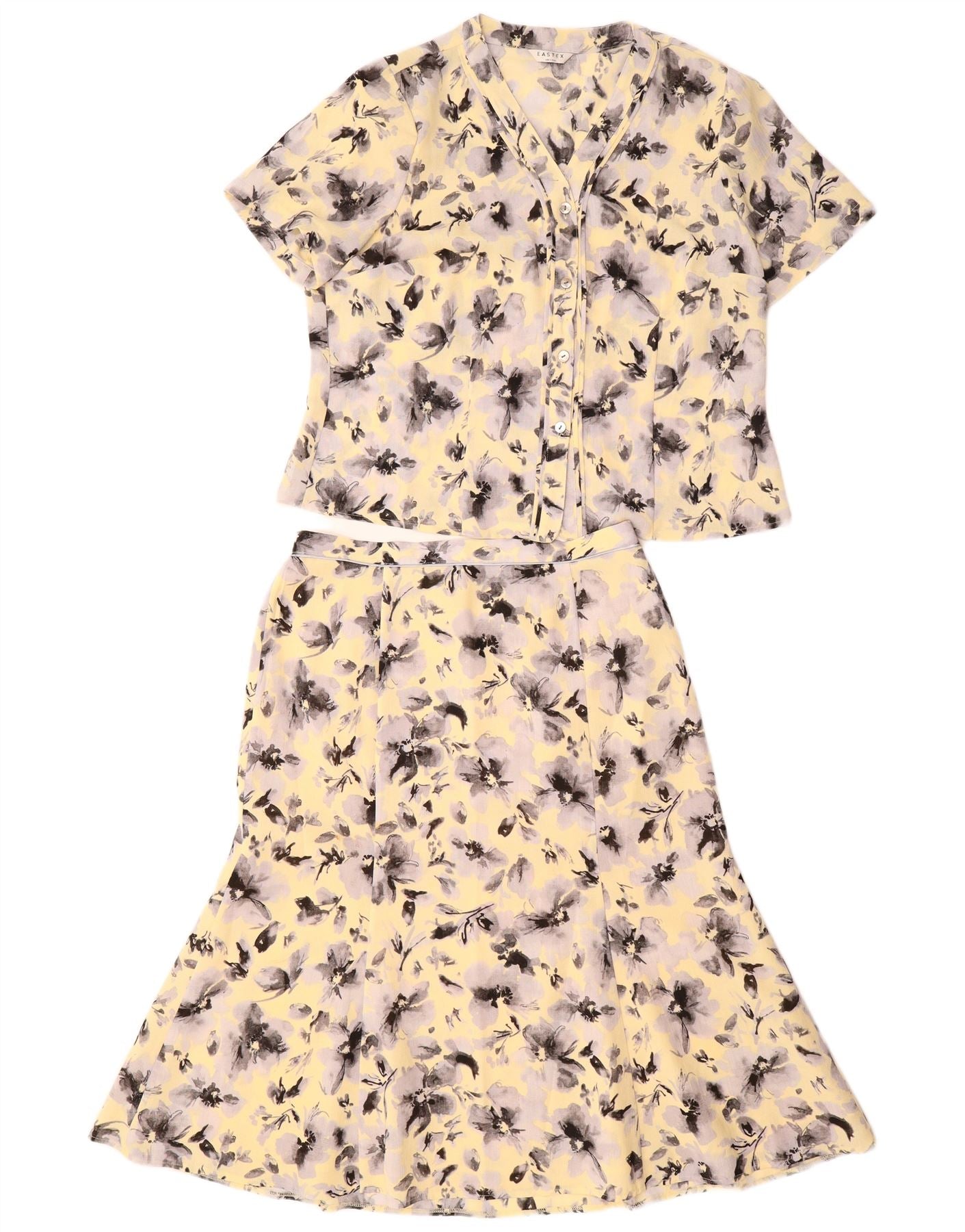 EASTEX Womens 2 Piece Skirt Set UK 16 Large W30 Yellow Floral Polyester